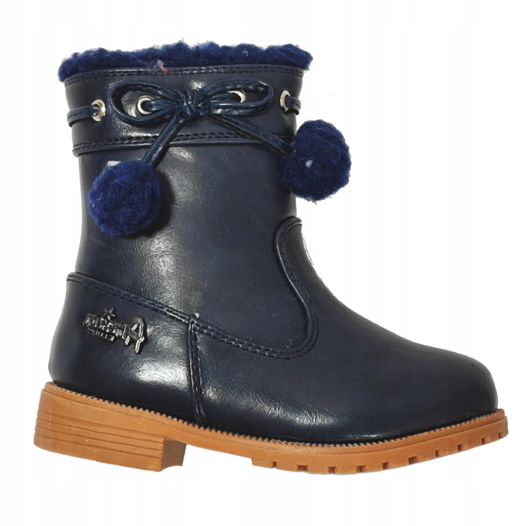 Практичні чобітки для дівчинки на неслизькій підошві. Сильно утеплений овчиною. Блискавка з внутрішньої сторони полегшує взування. Милі помпони, що прикрашають верхню частину верху.