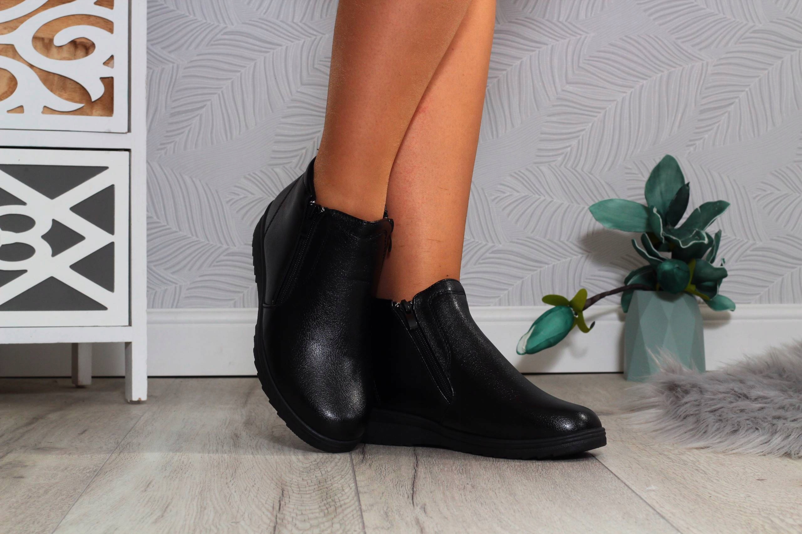 Жіночі чорні ботильйони. Легко надягаються - застібаються на дві блискавки. Низька, стійка підошва забезпечує хорошу амортизацію стопи та комфорт використання. � Простий дизайн доповнить багато стилів ❗