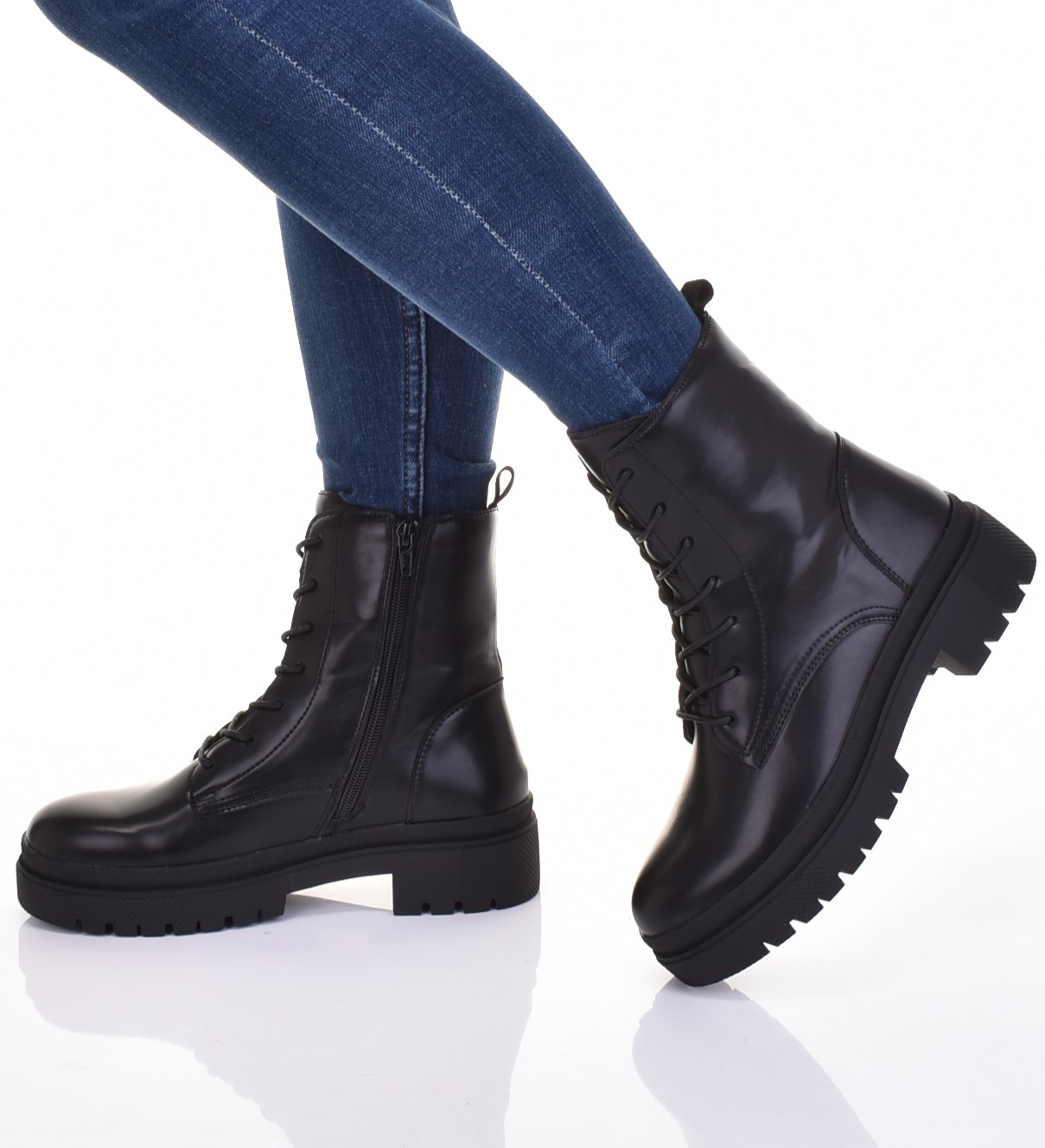 ЧОБОТИНКИ ЖІНОЧІ ШКІРЯНІ ЧЕРЕВИКИ НА ПЛАТФОРМІ НА ШНУРІВЦІ НА БЛИСКАВЦІ ЧОРНІ