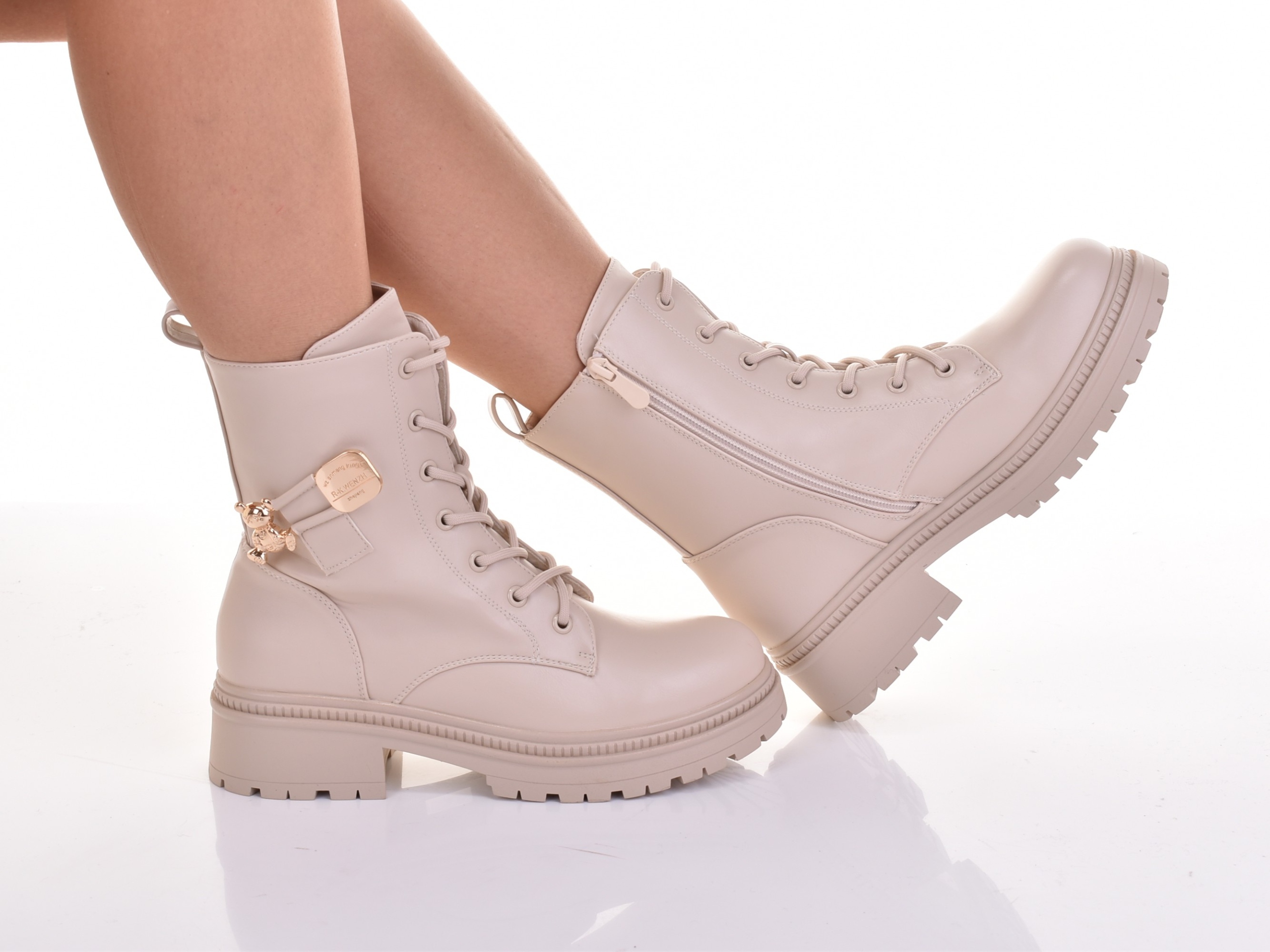 ЧОБОТИНКИ ЖІНОЧІ УТЕПЛЕНІ НА БЛИСКАВЦІ, ЕКОЛОГІЧНА ШКІРА, БЕЖЕВІ