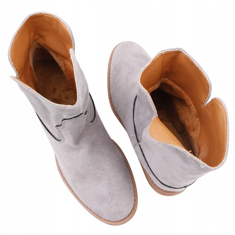 ЧОБОТИНКИ ЖІНОЧІ УТЕПЛЕНІ НА ПРИХОВАНІЙ ТАНКЕТЦІ ЗИМОВЕ ВЗУТТЯ, СІРА ЗАМША