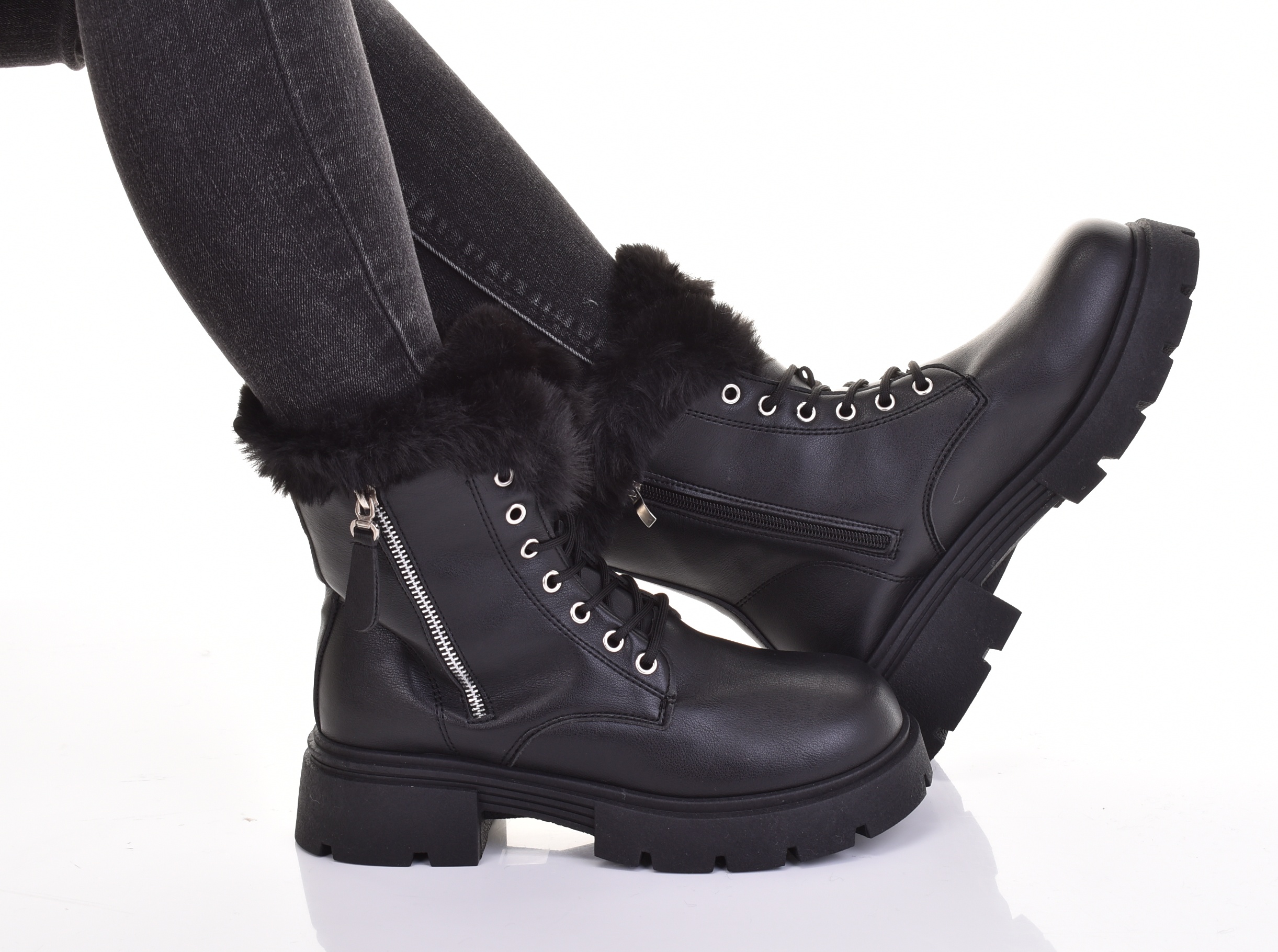 ЧОБОТИНКИ ТРАП ЖІНОЧІ УТЕПЛЕНІ ХУТРОМ, ТРАПЕРС ЕКОКІЗА, ЧОРНІ