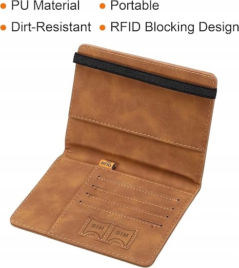 Гаманець має 4 слоти для карток, 2 слоти для SIM-карт, 1 слот для квитків, 1 слот для паспорта та 1 слот для готівки.