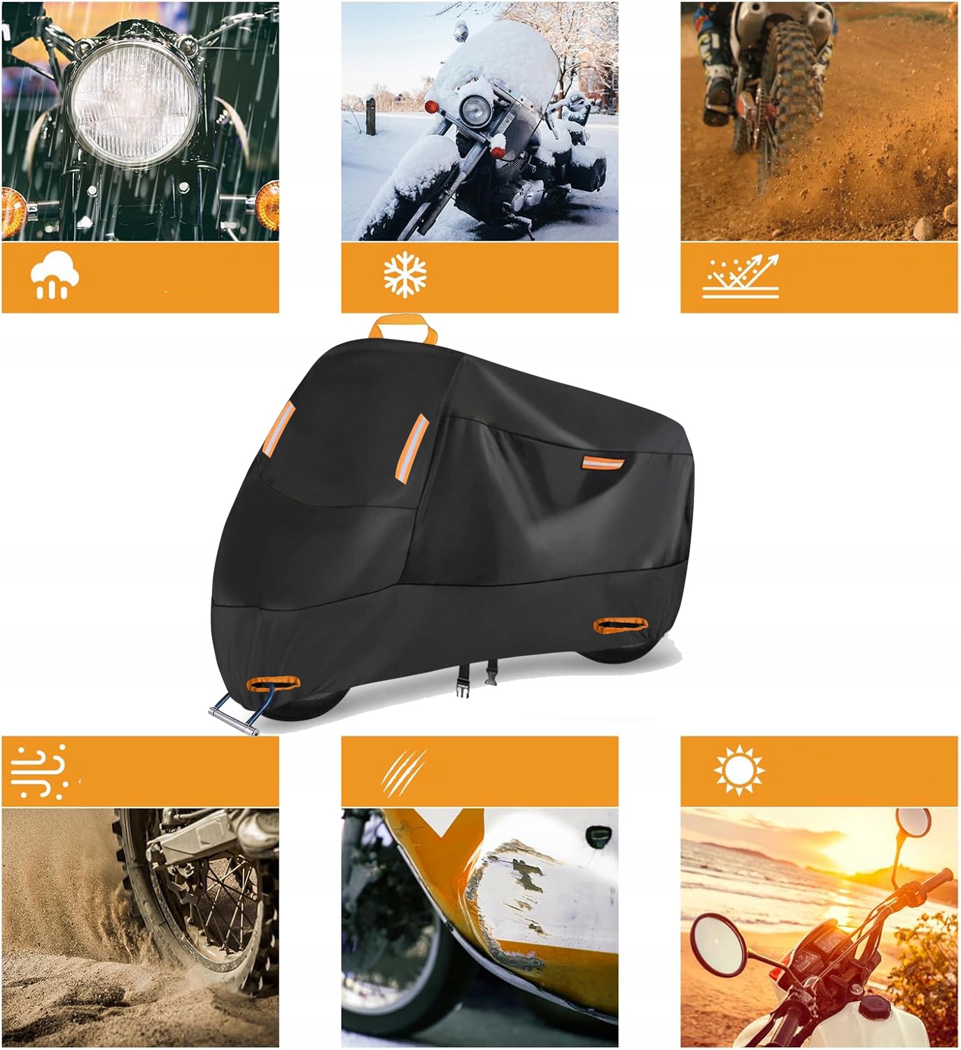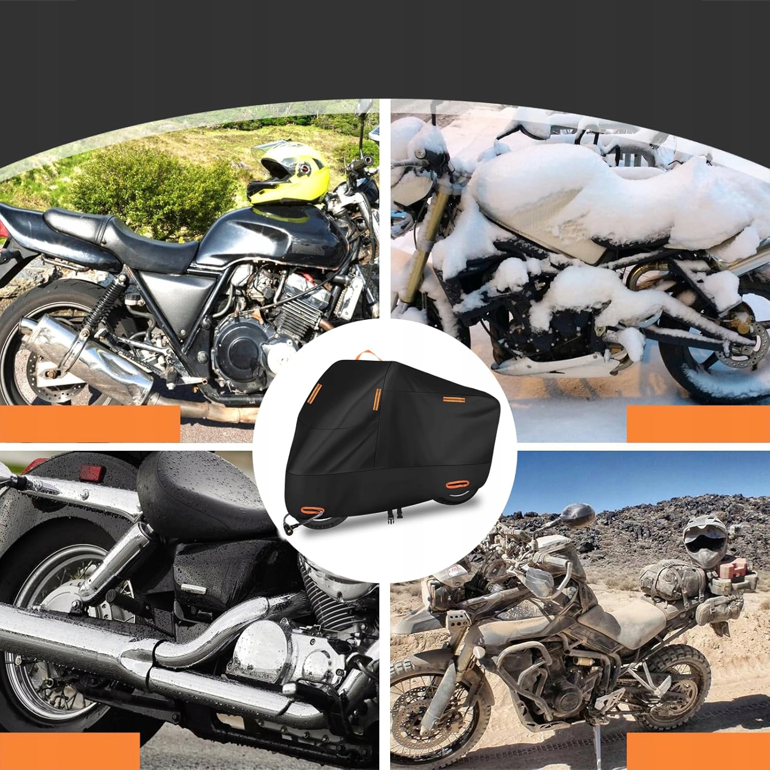 🏍️🏍️🏍️ 【Краща водонепроникність 210D】Цей зовнішній чохол для мотоцикла виготовлений із високоякісного оксфордського нейлону 210D, який витримує тиск води до 2000 мм, захищаючи ваш мотоцикл від дощу, пилу та поганої погоди від верху до дно. ПРИМІТКА: будь ласка, зверніть увагу, що довжина чохла для мотоцикла на 4 дюйми/10 см більша за фактичну довжину мотоцикла.