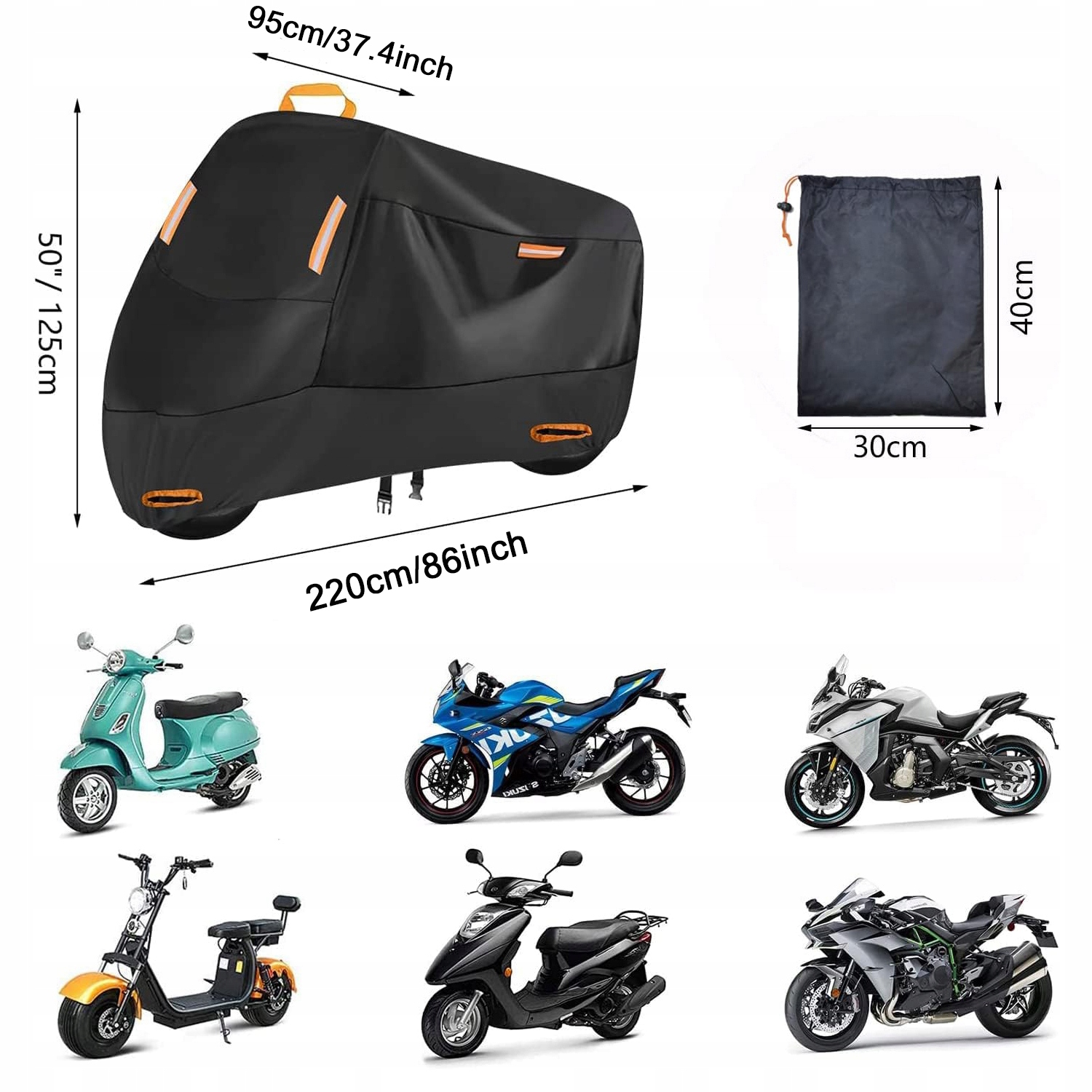 🏍️🏍️🏍️【Універсальний розмір】Розмір цього зовнішнього мотоциклетного чохла становить 220*95*125 см, він підходить для більшості мотоциклів, скутерів, мотоциклів і мопедів. Перед покупкою виміряйте свій мотоцикл, щоб переконатися, що він відповідає розміру.