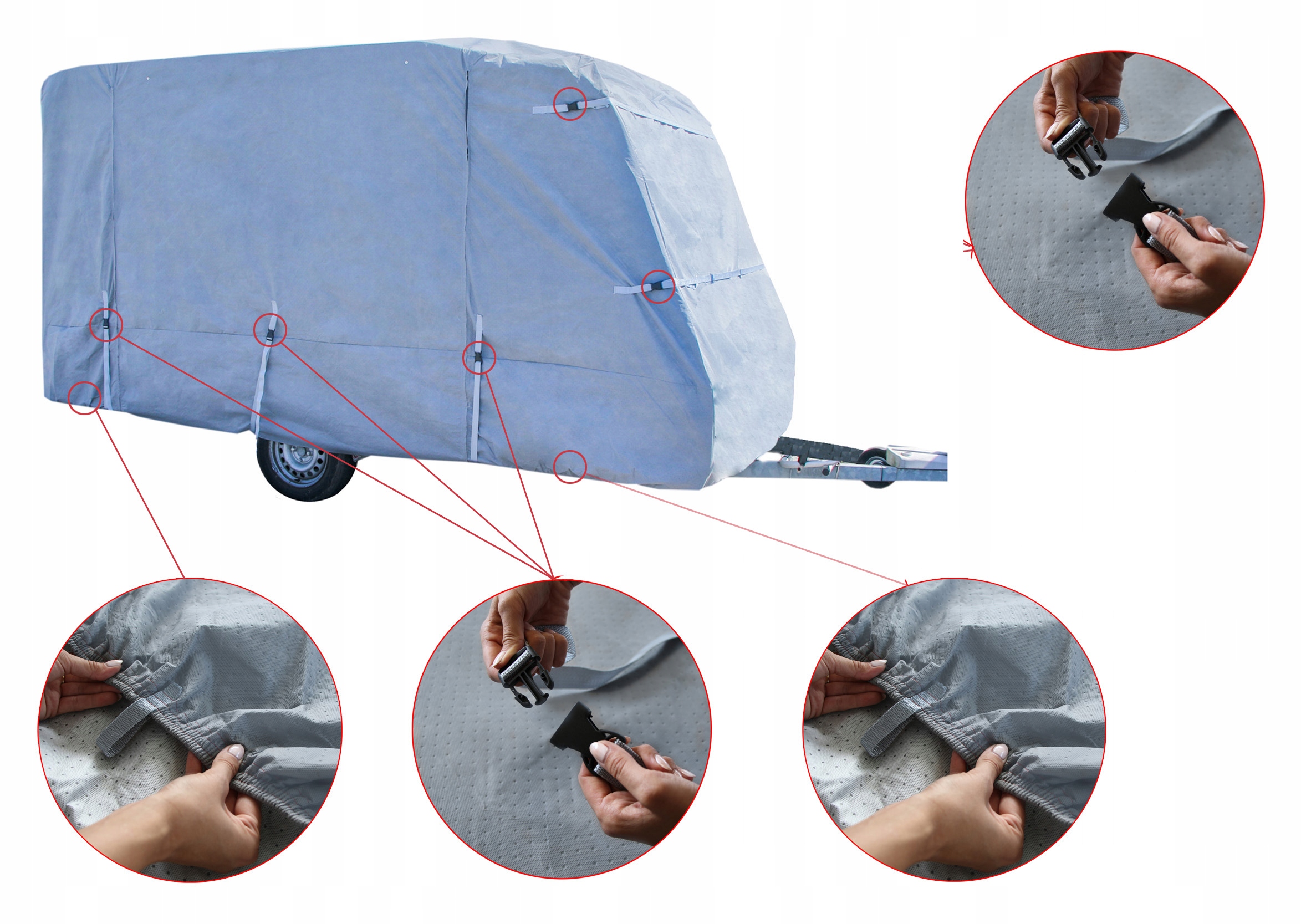Горизонтальні ремені дозволяють регулювати чохол відповідно до караван.