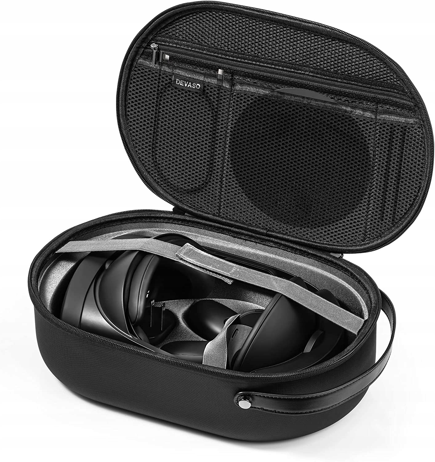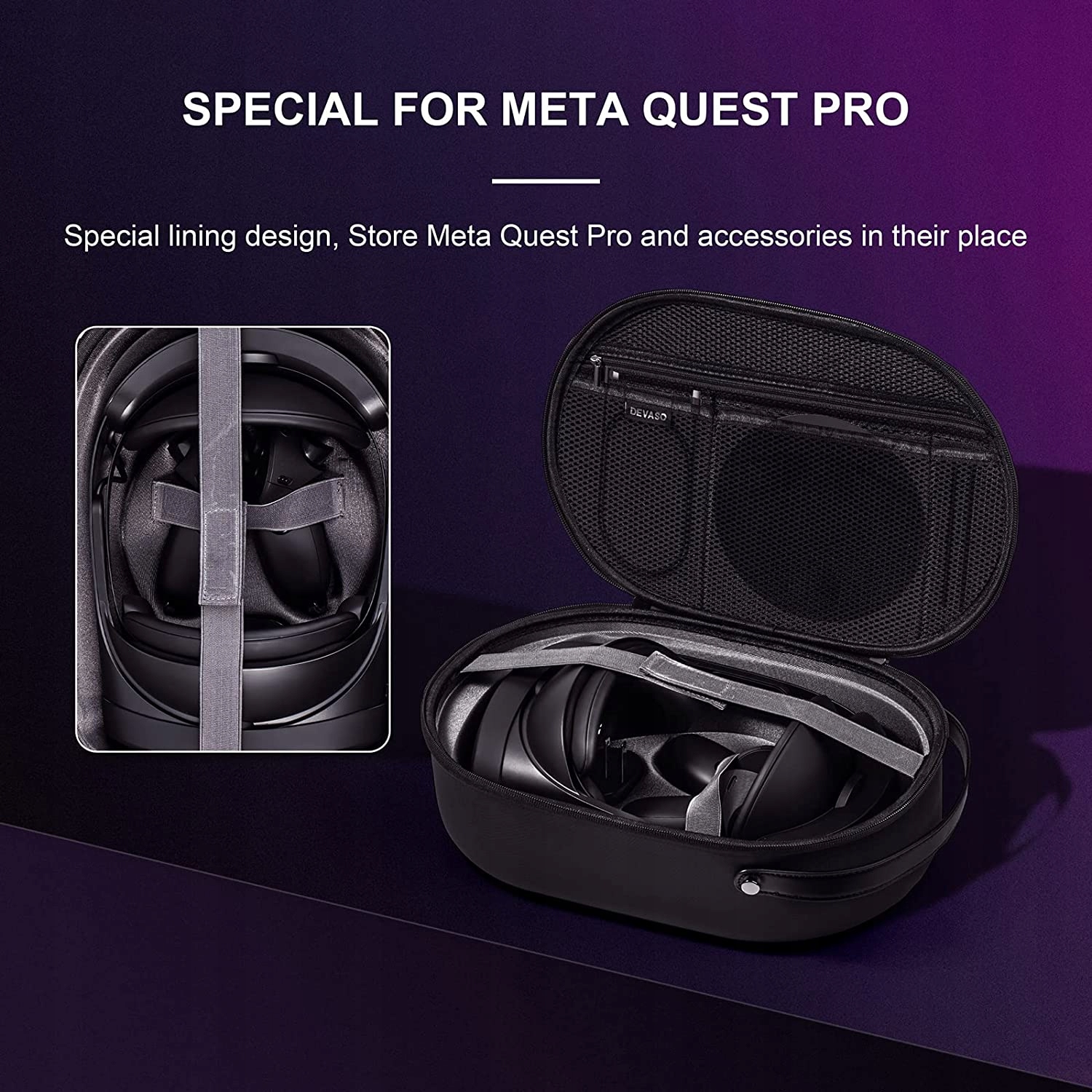 Вишуканий дизайн: чохол DEVASO із вбудованою двошаровою внутрішньою канавкою з лайкри, точна підгонка для meta quest pro, із сітчастою кишенею та еластичною стрічкою, допомагає краще фіксувати гарнітуру meta quest pro та аксесуари VR, запобігаючи їх ударам і ударам . Також з гладкою та міцною подвійною блискавкою для легкого відкривання та закривання.