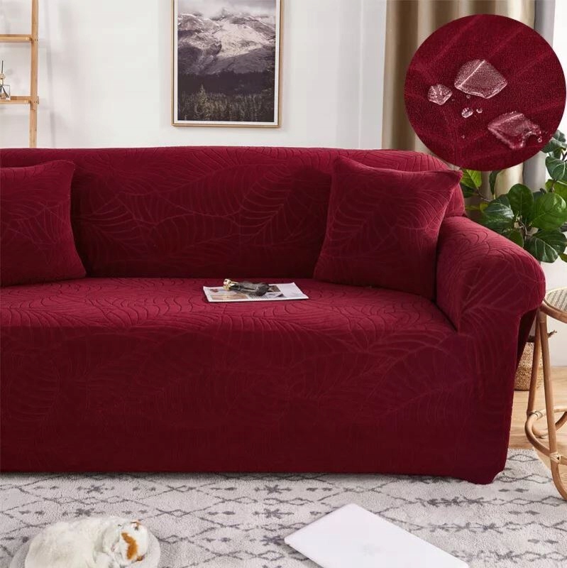 Ця пропозиція стосується чохла на диван (4-місний) шириною 235-300 см бордового кольору з двома наволочками (45х45 см)
