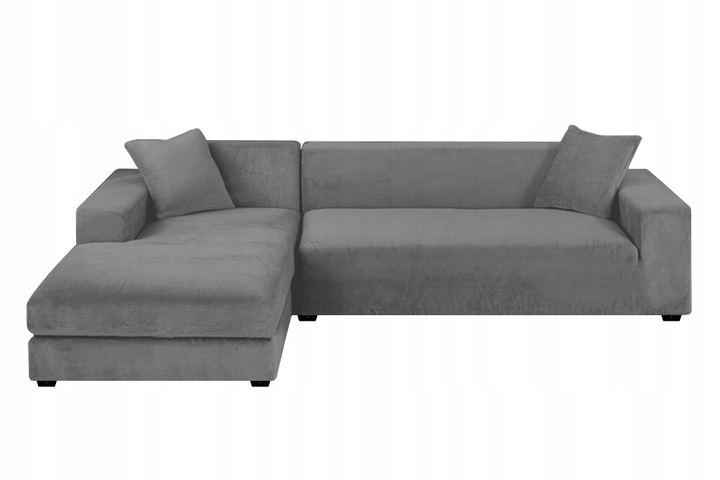 ЧОХАЛ НА ДИВАН КУТОВИЙ ДИВАН СВІТЛО-СІРИЙ ВЕЛЮР 190-230см РЕЗИНКА