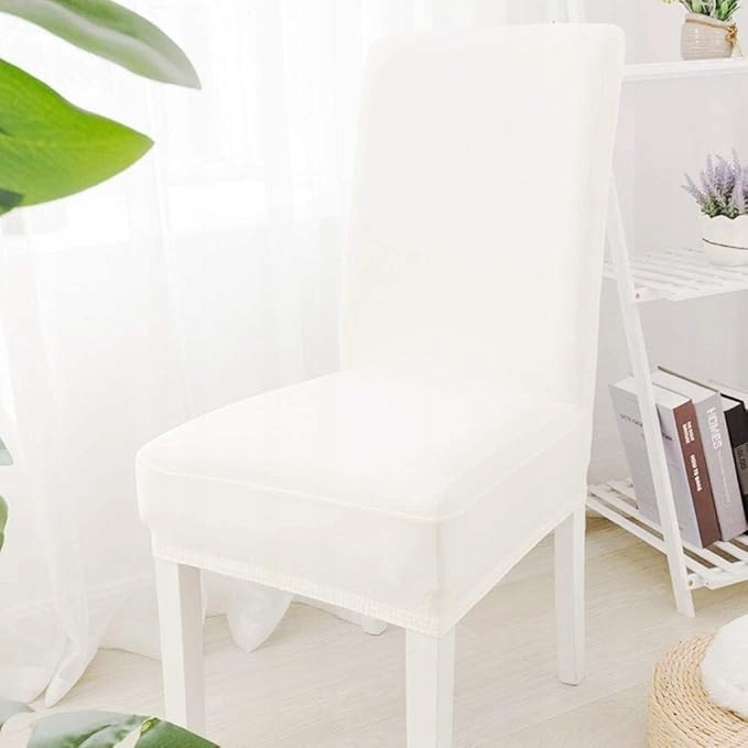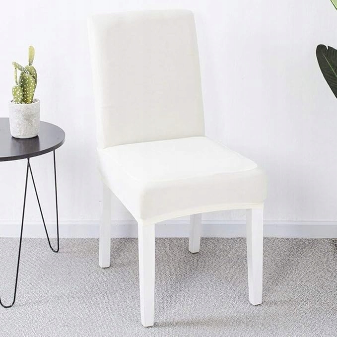 - Набір із 6 білих спандексових чохлів для стільців із високою спинкою. Ці білі чохли на обідні стільці можна прати та використовувати багаторазово.