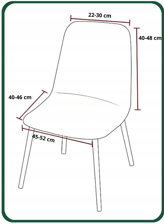 На малюнку нижче показано розміри стільців, до яких підходить наш чохол. Якщо ваше крісло на +- 2 см більше/менше - наш чохол все одно підійде!