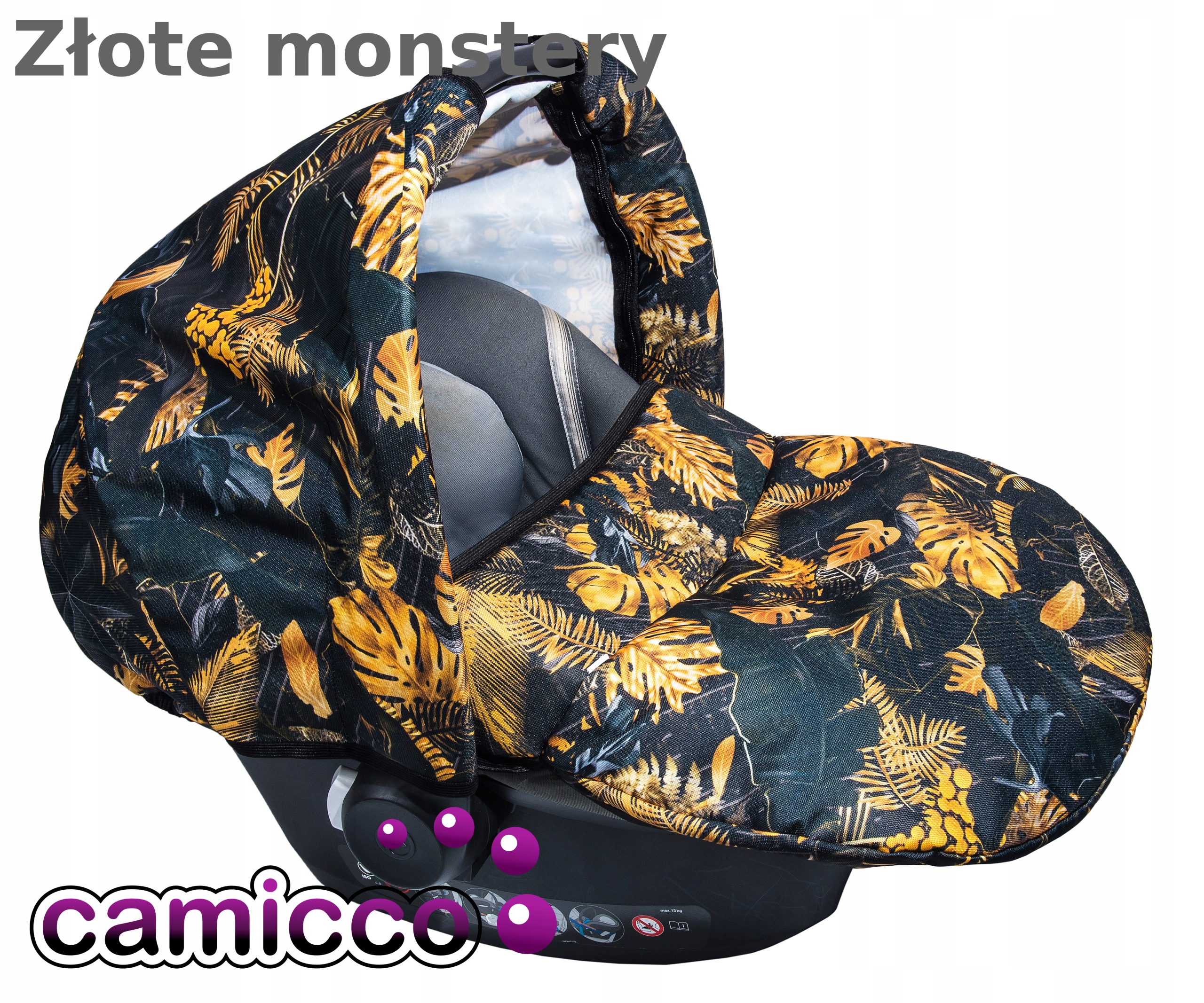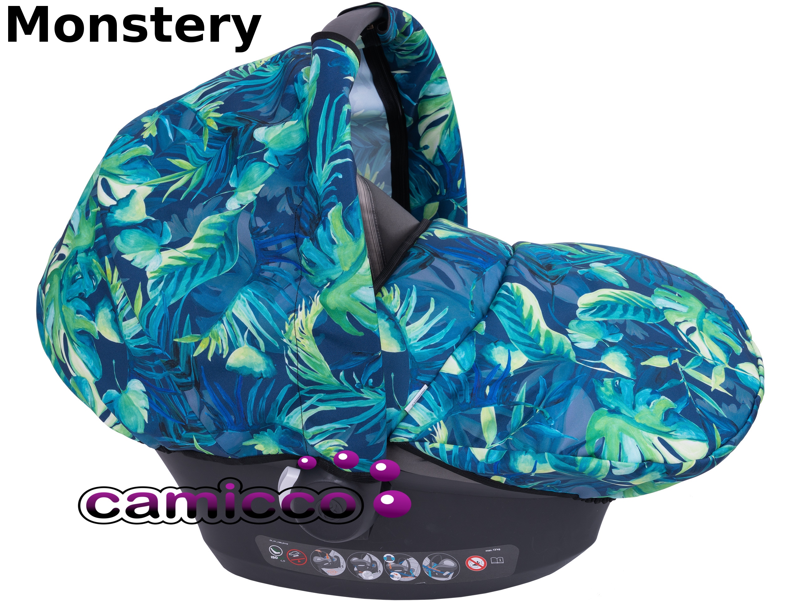 Завдяки вшитій резинці навіс добре прилягає до країв сидіння та стає жорсткішим, щоб полог не впав на дитину. Застібається на блискавку на ручці для перенесення сидіння. Він також має спеціальні вирізи для ручки (див. фото)