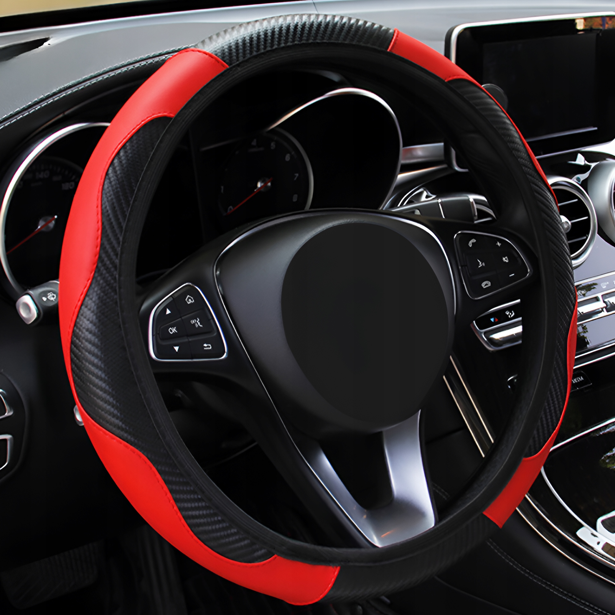 ЧОХАЛ НА РУЛЬМО КАРБОН НА ЧОРНОМУ ЧЕРВОНОМУ