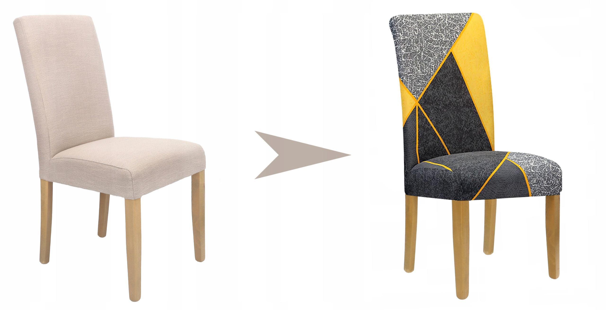 Сіро-жовта накидка на стільці, ГЕОМЕТРИЧНІ СПАНДЕКСНІ ВЗІЗУРКИ