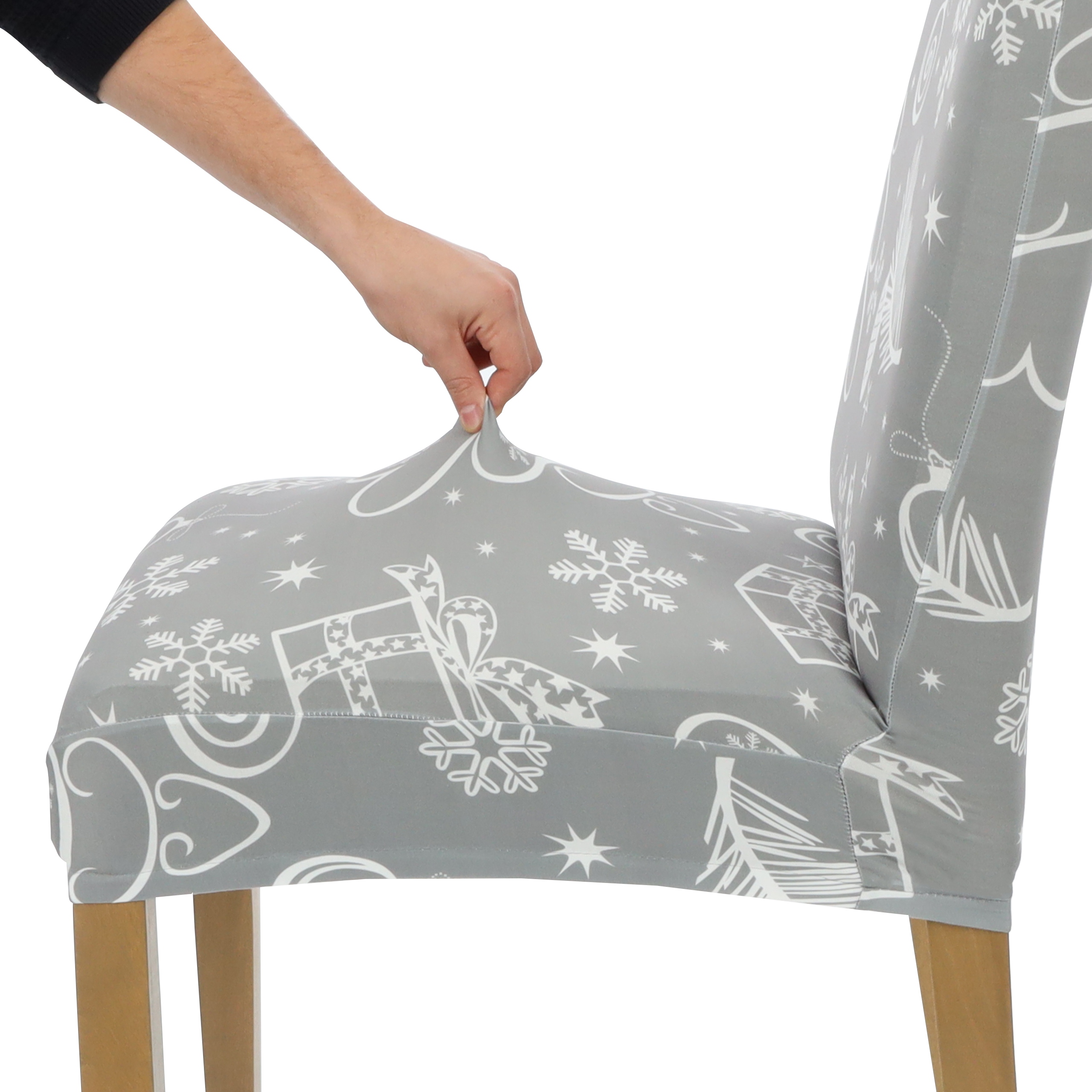 СІРА Чохол на стільці з РІЗДВЯНИМИ ВІЗЕРУНКАМИ