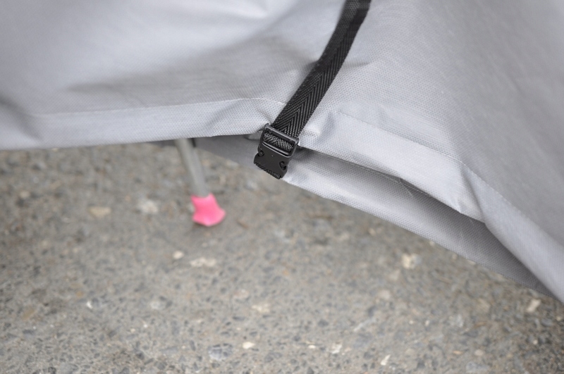 Інтуїтивно зрозумілий спосіб надягання чохла на велосипед за допомогою шнурка, вшитого в нижню частину чохла.
