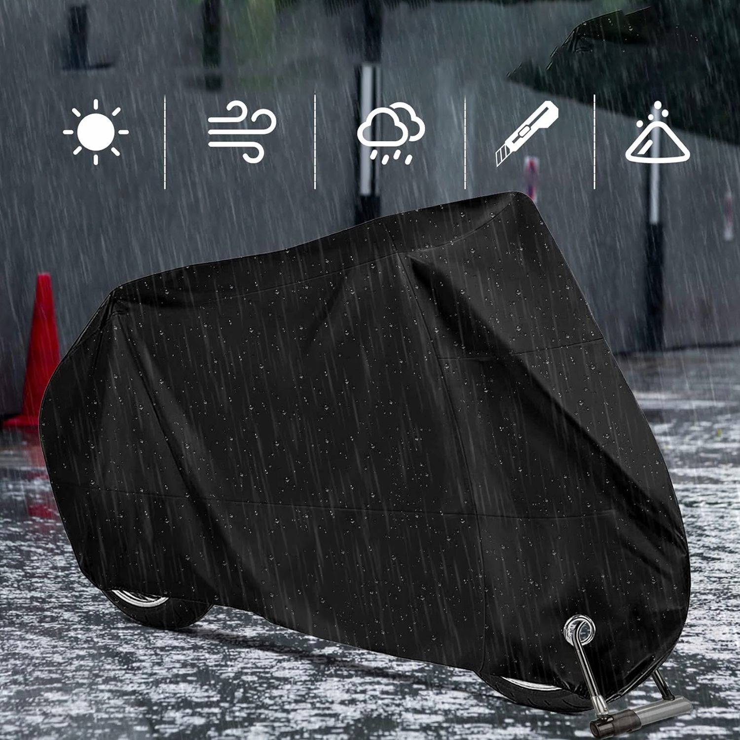 🏍️Захист від будь-якої погоди: Незалежно від того, чи йде дощ, сніг чи сонячний день, цей чохол для мотоцикла забезпечує ефективний захист за будь-якої погоди та запобігає розмаху чохла на вітрі.