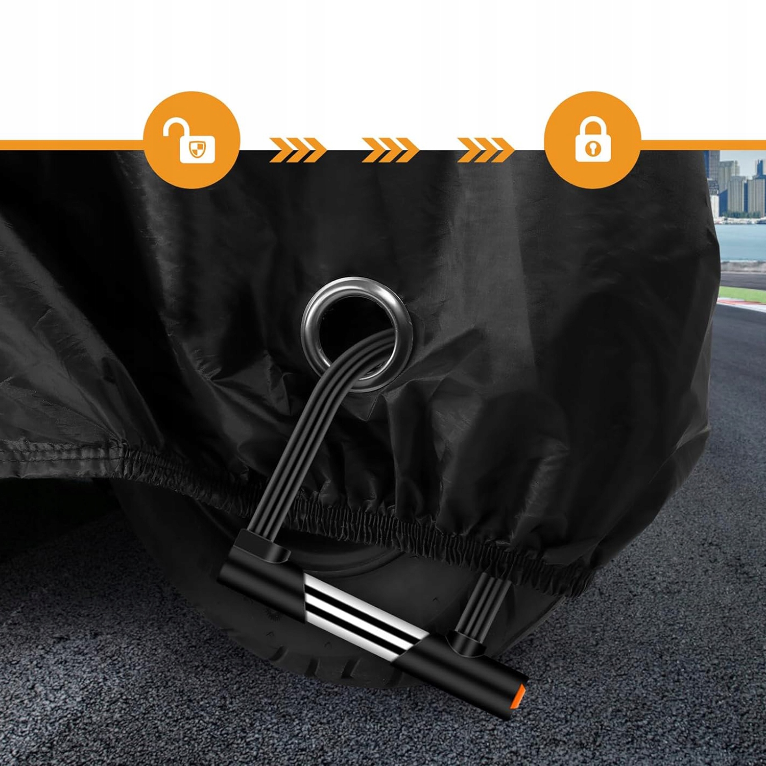 🏍️Отвір для ключа та замок:водонепроникний чохол для мотоцикла має два отвори на спереду та застібкою-блискавкою ззаду, її можна використовувати для замка мотоцикла, забезпечуючи безпеку мотоцикла навіть у вітряні дні та запобігаючи крадіжці.