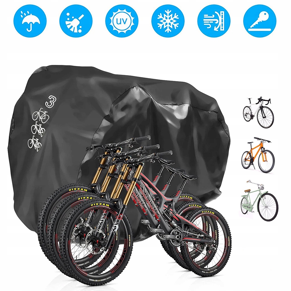ВИСОКИЙ ЗАХИСТ: товстий і міцний водонепроникний поліестер Оксфорд 190T забезпечує чудовий захист від несприятливих погодних умов (дощу, снігу, льоду, вітру, пилу та УФ-випромінювання). Внутрішнє поліуретанове покриття та анти-УФ-покриття захищають велосипед від пошкоджень, спричинених УФ-випромінюванням.