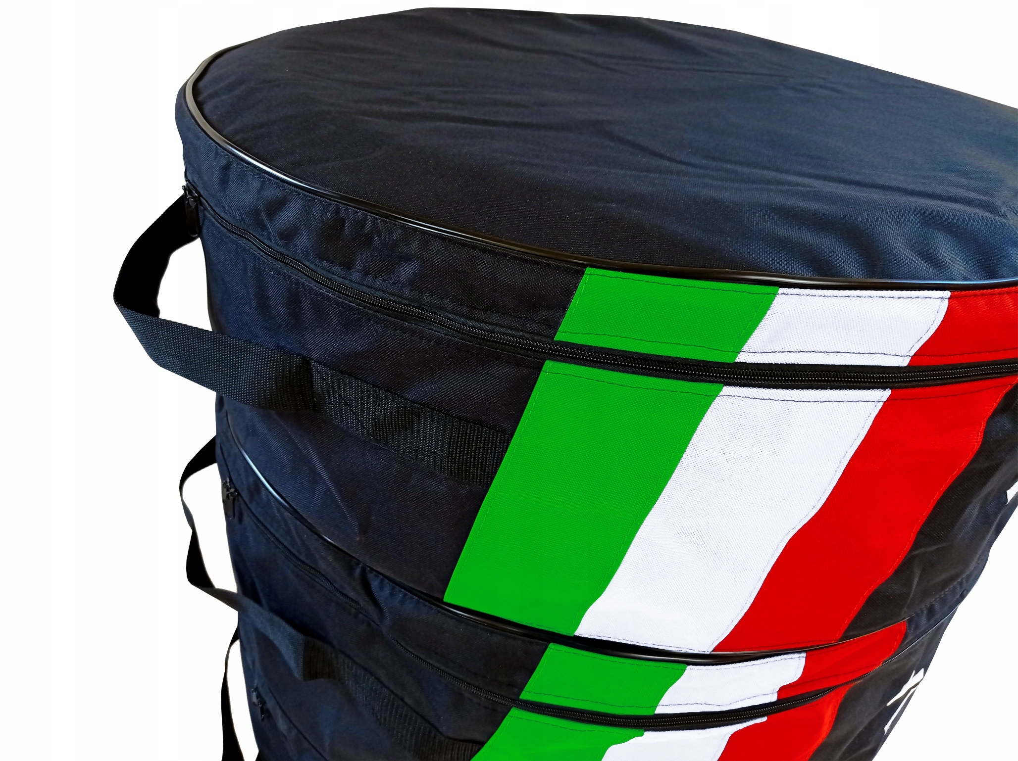 Нижче наведено ковпаки для шин/коліс у версії «СТАНДАРТ», виготовлені з міцного водонепроникного матеріалу з ПВХ-покриттям під назвою кодура. Чохол розроблений і виготовлений LASOTA, підігнаний під розмір шини, вказаний на аукціоні. Для виготовлення чохла використовувалися найякісніші матеріали, такі як: шкіряні нитки, петля-блискавка 0,5 см, шкіряний ремінь і ремінь для перенесення товщиною 40 мм з вантажопідйомністю в кілька сотень кілограмів, тому ви можете безпечно носити не тільки шини але також шини в чохлах.також шини на дисках. Чохол нашої компанії полегшує перенесення, транспортування та естетично зберігає шину/колесо протягом багатьох років.