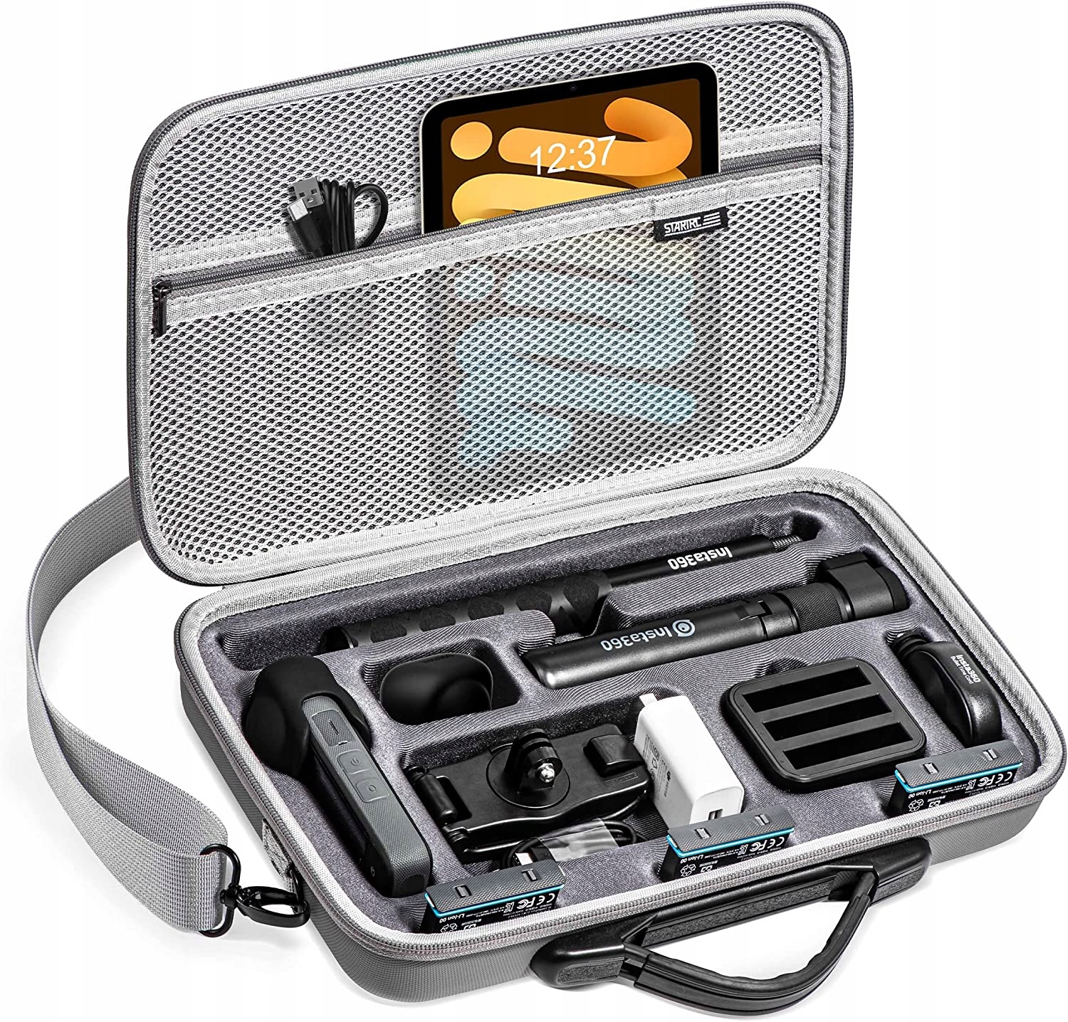 【Велика ємність】Він може вмістити 1*подовжувач Insta360, 1* багатофункціональний акумуляторний ящик, кабелі, стопорний гвинт, SD-карти та багато інших аксесуарів для камери.