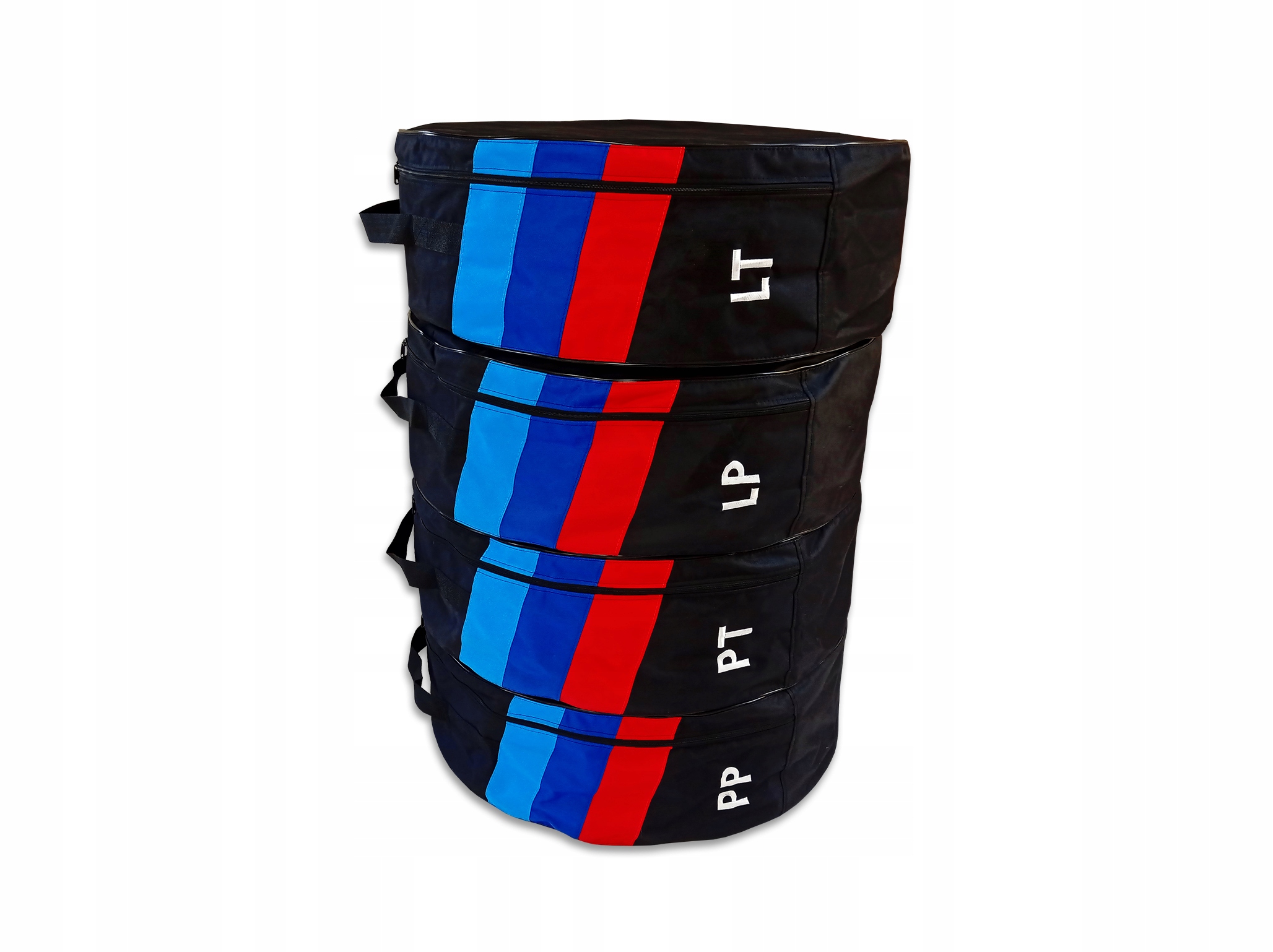 Нижче ми представляємо ковпаки на шини/колісні диски у версії «СТАНДАРТ», виготовлені з міцного водонепроникного матеріалу з ПВХ-покриттям під назвою codura. Чохли розроблені та виготовлені компанією LASOTA, підігнані під розмір шин, вказаний на аукціоні. Для виготовлення чохлів використовувалися найякісніші матеріали, такі як: шкіряні нитки, петля-блискавка 0,5 см, шкіряний ремінь і ремінь для перенесення товщиною 40 мм навколо чохла, вантажопідйомністю кілька сотень кілограмів, тому в чохлах можна безпечно перевозити не тільки самі шини, але і шини на дисках. Чохли нашої компанії полегшують перенесення, транспортування та естетично зберігають шини та цілі колеса протягом багатьох років. Крім того, на кожному чохлі є вишитий напис із маркуванням шини (наприклад, PT - права задня тощо).