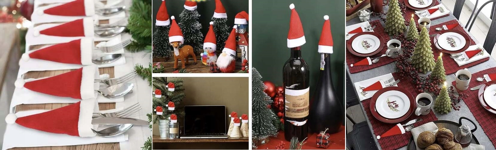 Красиві декоративні кришки для столових приборів із зображенням капелюха Діда Мороза — чудова прикраса столу під час Різдва. Чохли для столових приборів із серії Christmas зроблять Різдво ще красивішим.