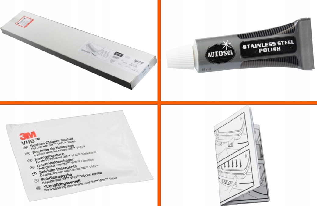 Ви отримаєте накладку в міцній упаковці з покроковими інструкціями зі складання та серветкою для знежирення 3M. Чудова формула препарату забезпечує сталевій поверхні тривалий блиск без подряпин і надійний захисний шар.