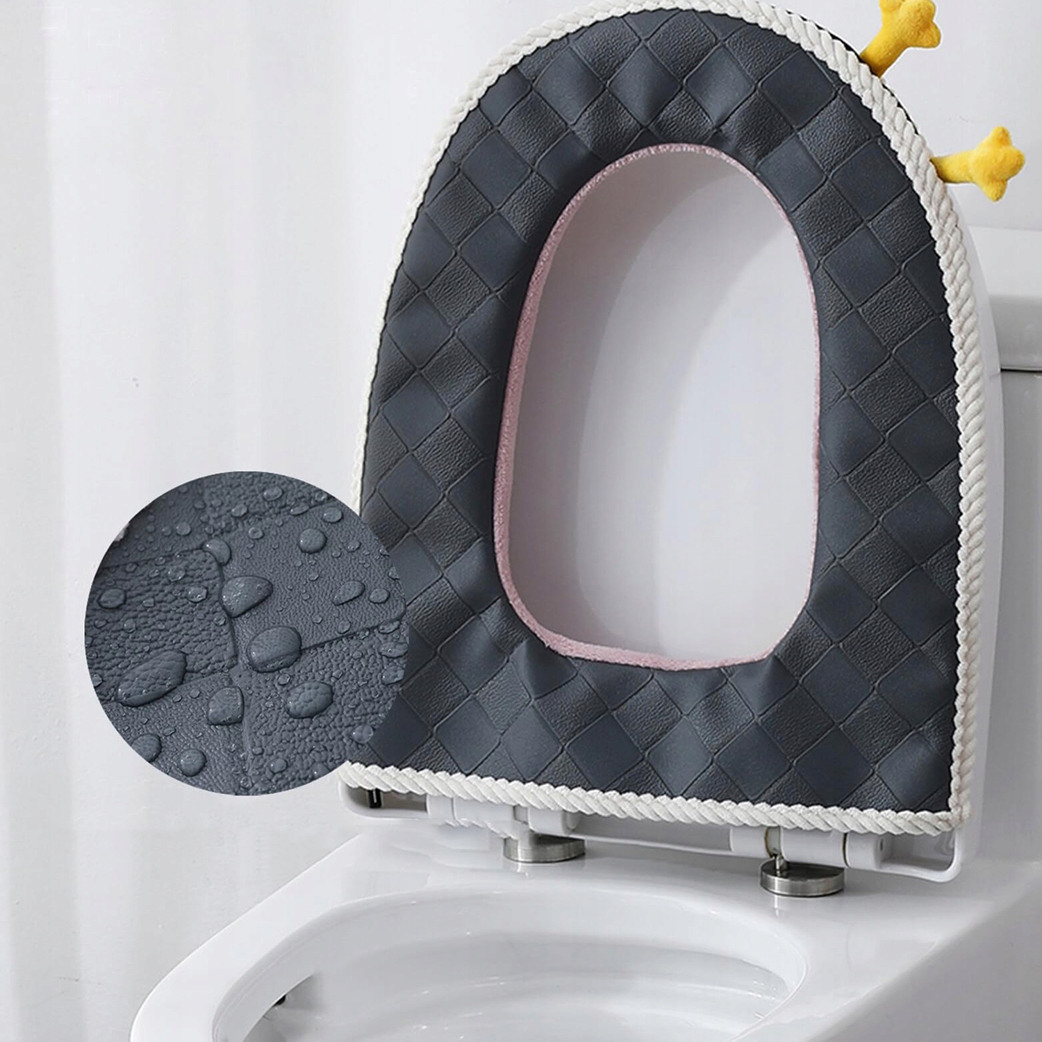 🚽🚽 Щільна та м’яка подушка для сидіння унітазу з приємного до шкіри волокна дозволяє вам попрощатися з холодним дотиком взимку, в ньому тепло і комфортно. Спинка виготовлена з високоякісної водонепроникної PU шкіри, яка є водонепроникною, стійкою до плям і легко чиститься. Щільна блискавка повністю закриває сидіння унітазу, яке є гладким, антипригарним, міцним і не впаде.