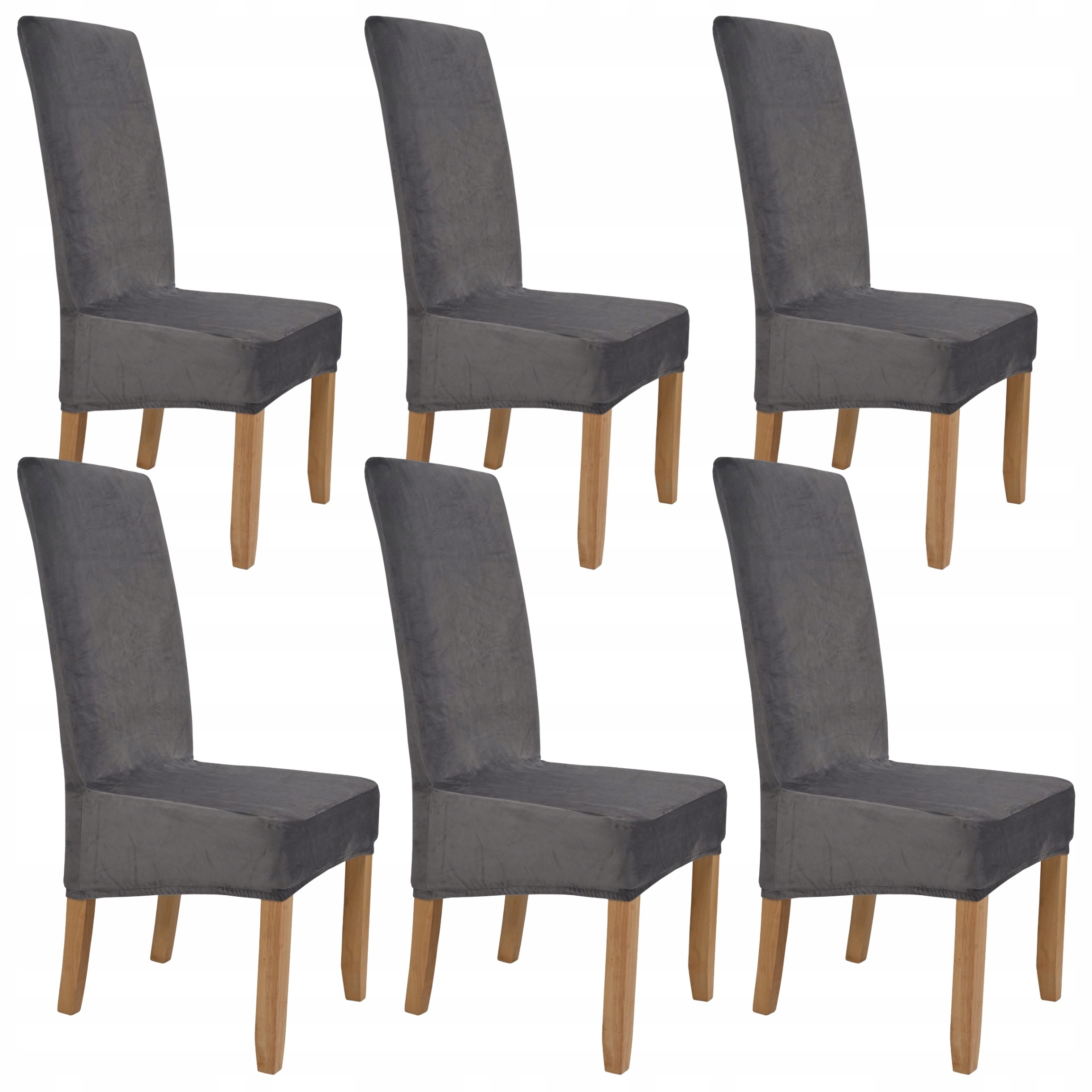 ЧОХЛИ ДЛЯ СТІЛЬЦІВ КОСІ велюрові еластичні TESS 6 шт темно-сірі