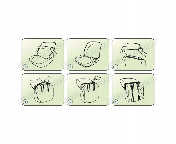 Чохли оснащені необхідними отворами для кріплення, що дозволяє їх встановлювати без необхідності знімати підголівники та робити додаткові отвори . Тильна сторона чохлів повністю покрита та додатково ламінована пінополіуретаном, який характеризується високою адгезією. Завдяки такій конструкції чохли міцно прилягають до сидінь і добре їх облягають.