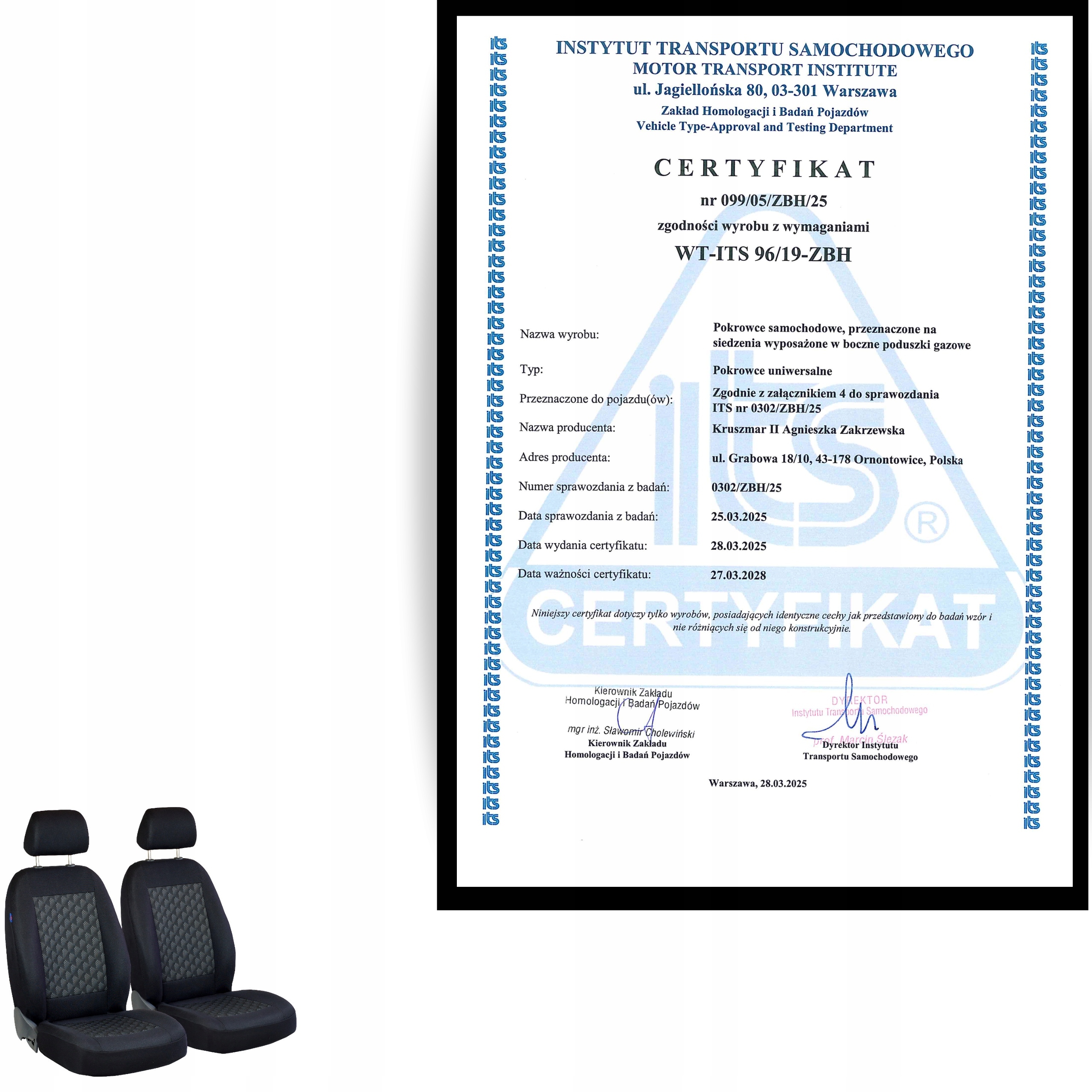 ⛨ Сертифікат безпеки ITS – відповідність AIRBAG