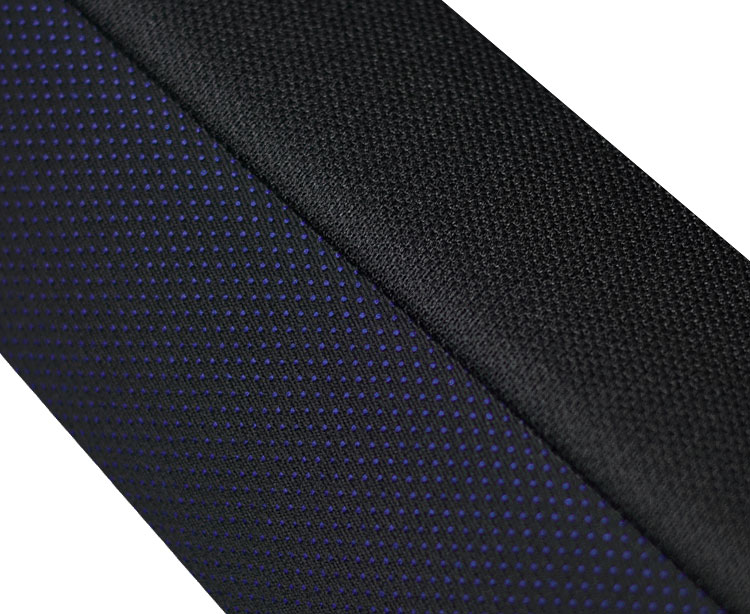 Чохли WELES в основному виготовляються з тканини однорідного чорного кольору. Центральна частина чохлів збагачена темно-синім візерунком. Стримані кольори ідеально впишуться в інтер'єр будь-якого автомобіля. Приємна текстура матеріалу поглибить позитивний досвід використання. Матеріал з внутрішньої сторони ламінованийпінополіуретаном, що запобігає зсуву чохлів відносно сидінь. Чохли мають відкриту спинку, що дозволяє висувати підлокітник, якщо автокрісло має його як з лівого, так і з правого боку.
