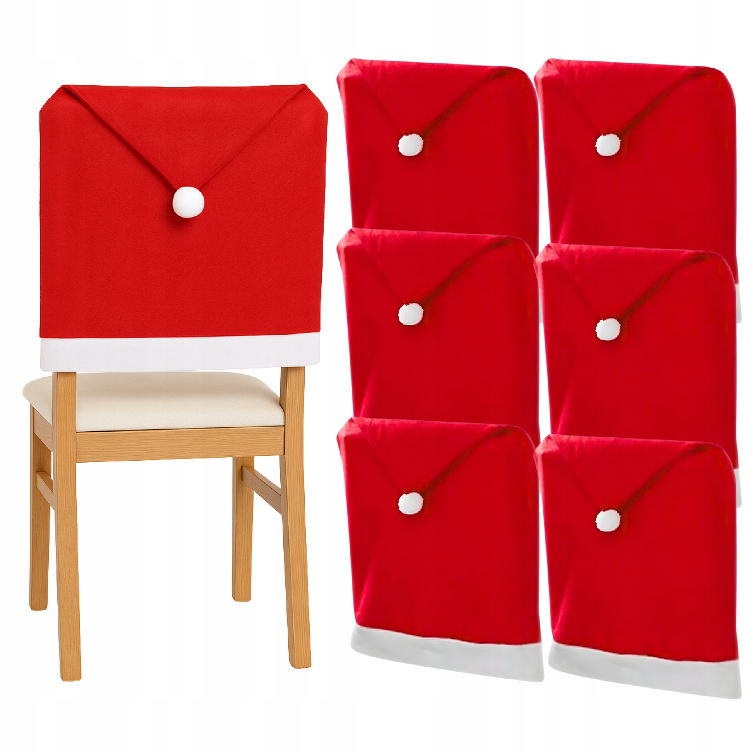 ЧОХЛИ РІЗДВЯНІ ЧОХОЛ НА СТІЛЕЦЬ СТІЛЬЦІ ШАПКА МИКОЛАЯ КОМПЛЕКТ 6х