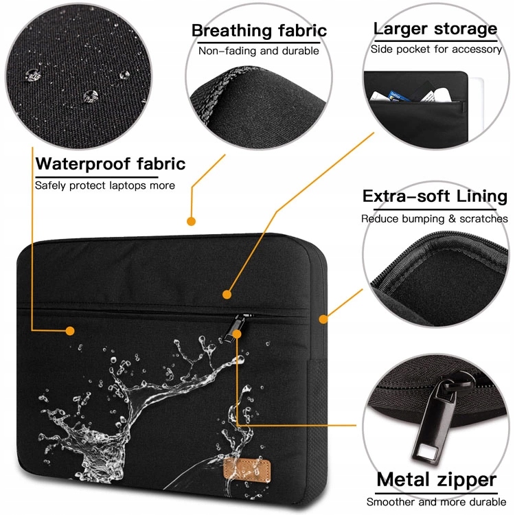 Універсальний чохол з високоякісного неопрену та вологостійкого нейлону. Забезпечує безпечне транспортування ноутбука та захищає від подряпин, інших пошкоджень і забруднень. Внутрішня частина обшита м'якою тканиною, яка забезпечує чудову амортизацію під час падіння.