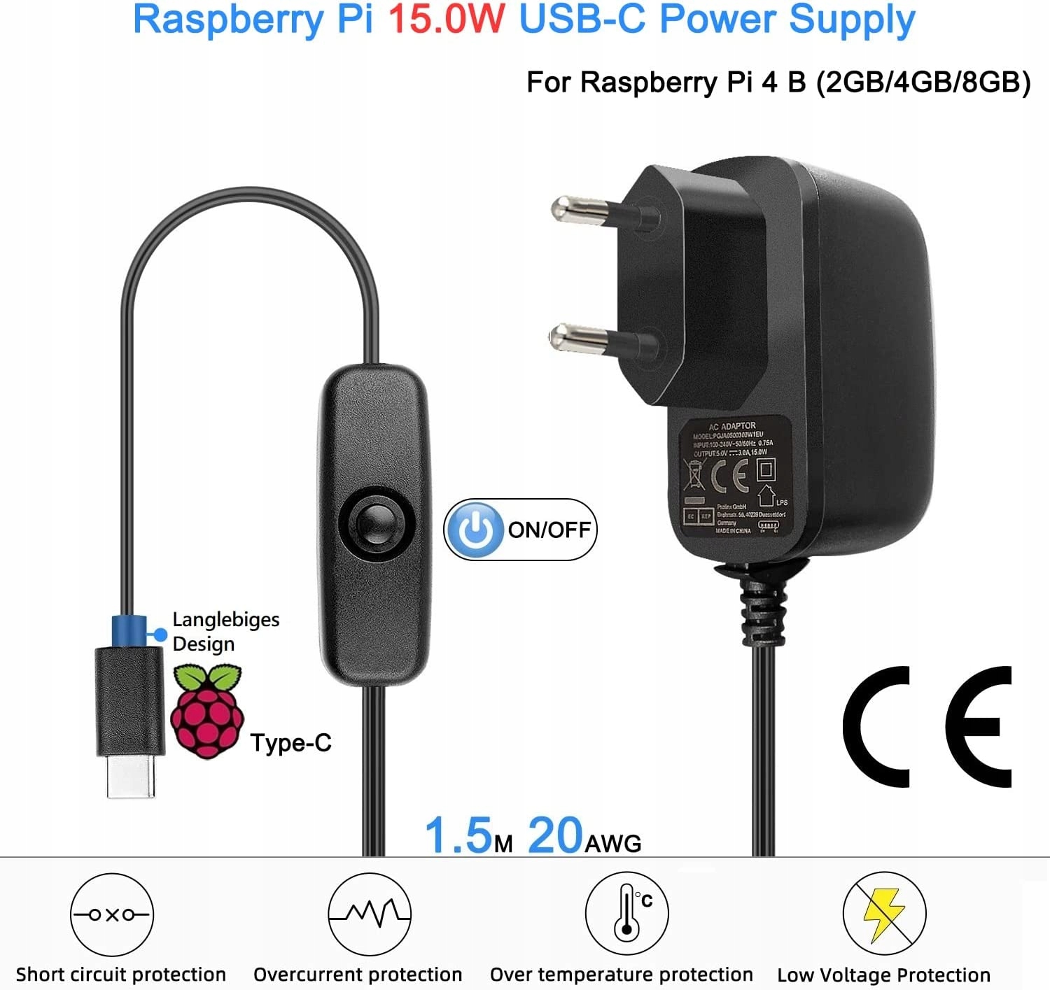 Адаптер змінного струму 3A USB-C-C розроблено та протестовано спеціально для 1,5-метрового Raspberry Pi з перемикачем увімк./вимк. Перевагою є те, що вам не потрібно використовувати кабель під час увімкнення та вимкнення PI.