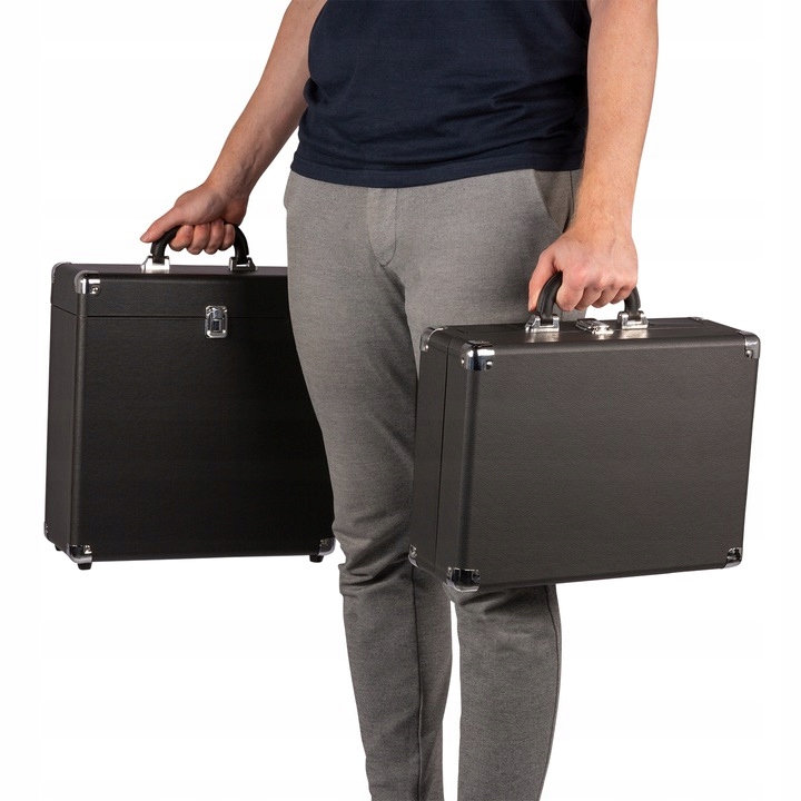 Валіза Fenton дуже міцна і гарантує безпеку ваших вінілів під час транспортування. Цей вініловий чохол зі шкіряною окантовкою, металевими захисними кутами, м’якою фланелевою внутрішньою частиною та металевими петлями не розчарує вас.