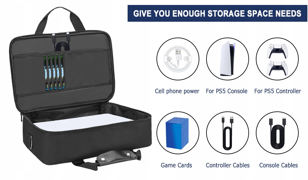 - 【Ідеальний подарунок】. Дорожній футляр для PS5 є портативним, у нього можна вмістити всі ваші аксесуари для PS5 і задовольнити всі ваші потреби PlayStation 5. Це гарний подарунок для ваших друзів і родини на день народження, річницю та Різдво.