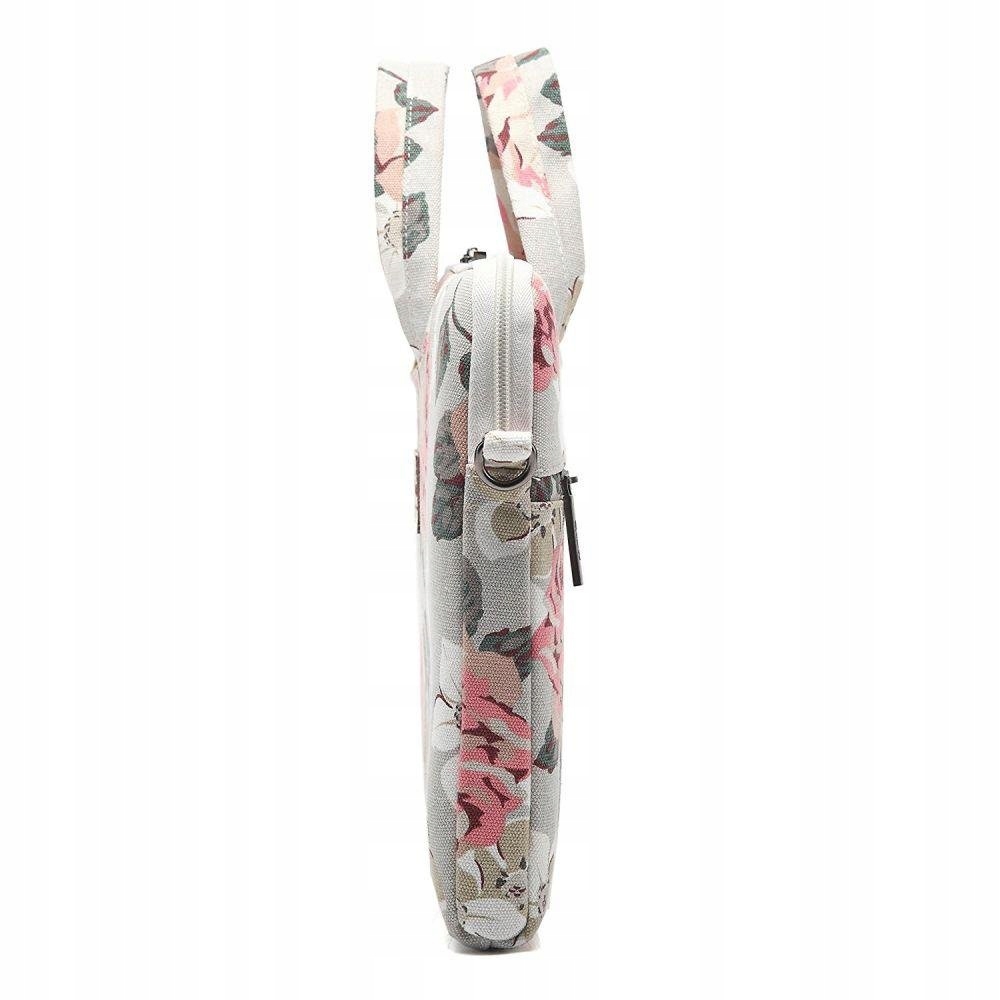 Чохол, сумка для ноутбука 14 дюймів, з ручкою та ремінцем, білий з квітами