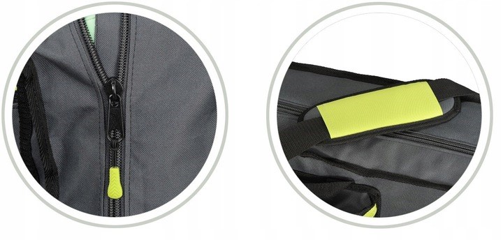 Має 4 місткі кишені, плечовий ремінь, ручку для транспортування, дно, укріплене міцним водонепроникним матеріалом і світловідбивачами. Сучасний дизайн, зручний, функціональний, виготовлений з дуже міцного матеріалу, забезпечує зручне транспортування та захищає стіл від пошкоджень.