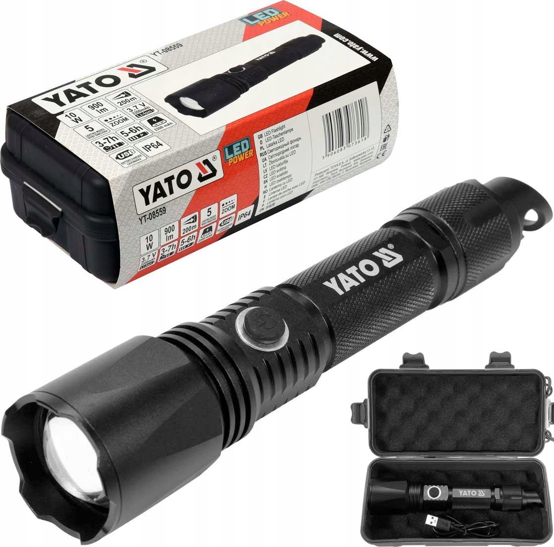 Стійкий алюмінієвий ліхтарик від Yato, оснащений діодом SST40, який забезпечує світло потужністю 900 лм і радіусом дії 200 м.