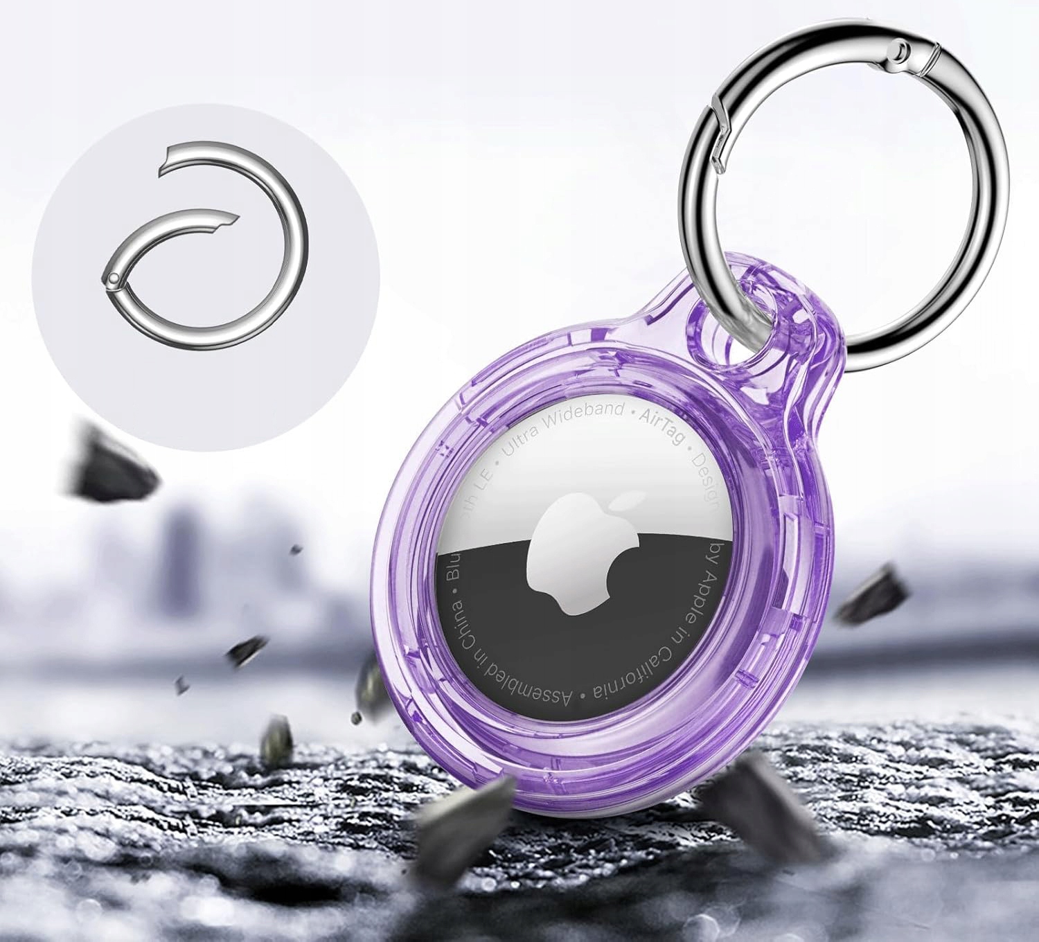 ЧОХОЛ ДЛЯ APPLE AIRTAG, ПОСИЛЕНИЙ ЧОХОЛ ДЛЯ LOCAR, КІЛЬЦЕ ДЛЯ БРЕЛОВ - ФІОЛЕТОВИЙ