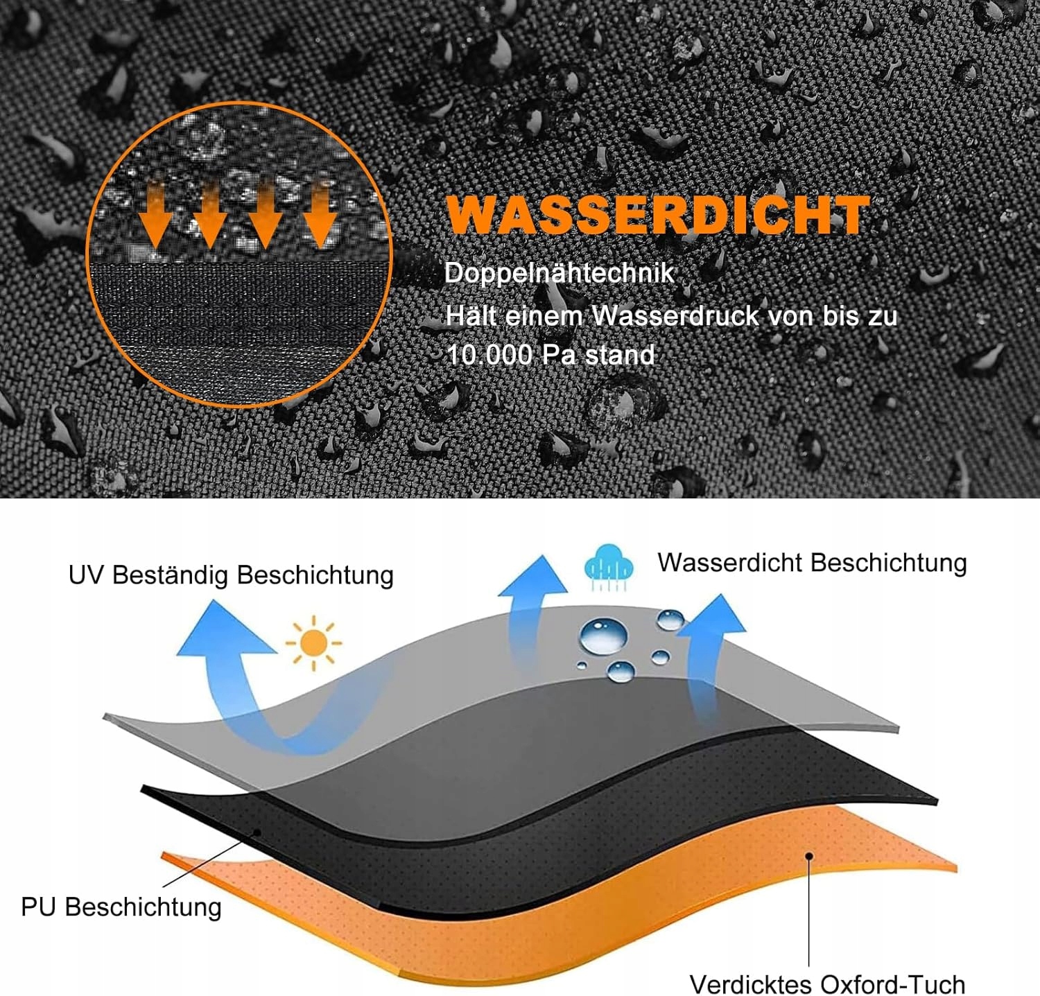 - 600D Heavy-Duty and Super Waterproof – виготовлений із високоякісної тканини Oxford 600 із поліуретановим покриттям, 4-колісний квадроцикл є дуже міцним і надзвичайно водонепроникним. Поліуретан є більш дихаючим і м’якшим, ніж ПВХ, а поліуретанове покриття робить наші чохли тоншими за інші, але стійкішими до розривів і легшими для носіння. Інші можуть бути товщі, але їхній ПВХ через деякий час твердне і тріскатиметься на сонці та дощі.