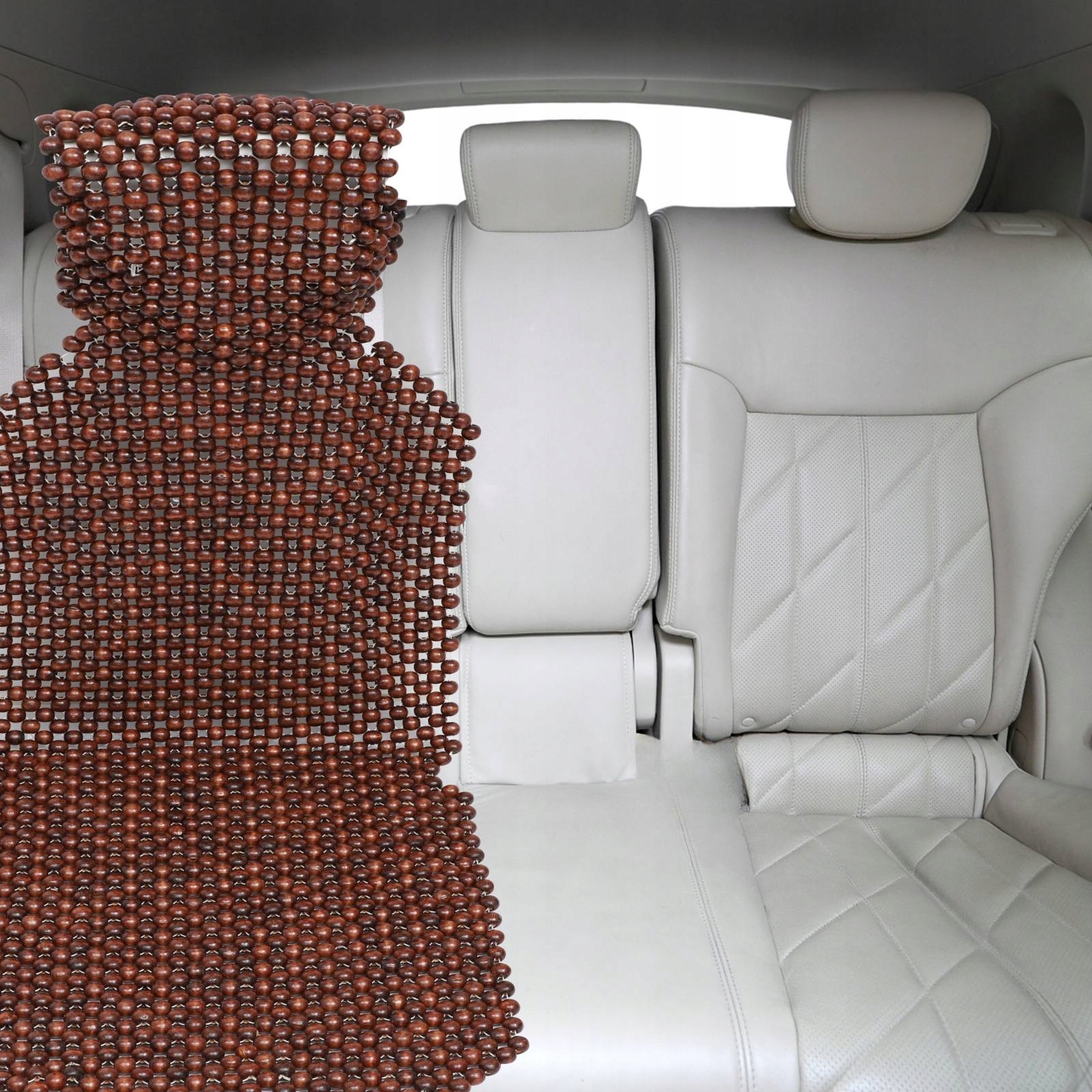 ПОДУШКА В АВТОМОБІЛЬНОМУ СИДІННІ З ДЕРЕВ'ЯНИМИ КУЛЯМИ КОМФОРТНО ОХОЛОДЖУЄ