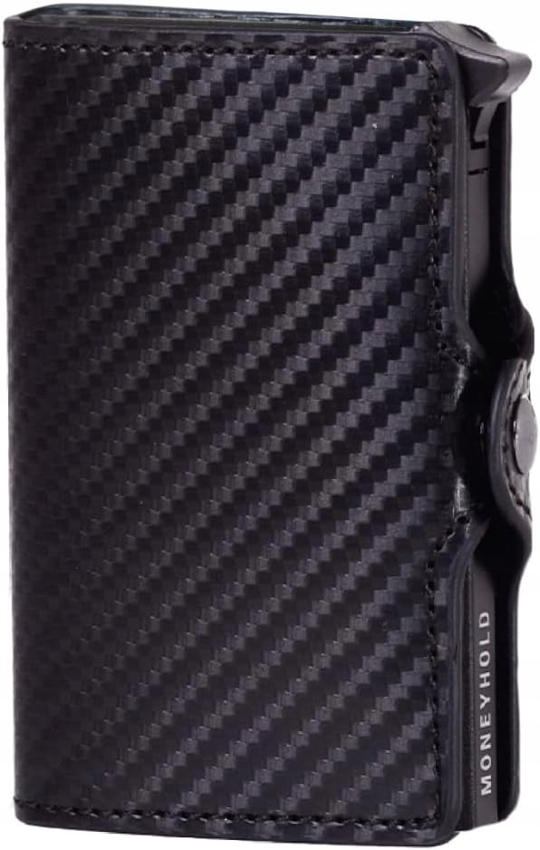 - Картки не випадають - Завдяки власнику кредитної картки Moneyhold ваші картки залишаються в безпеці у спеціальному відсік . Наш запатентований механізм запобігає випадковому падінню карток, навіть коли гаманець народжується, водночас забезпечуючи безпеку