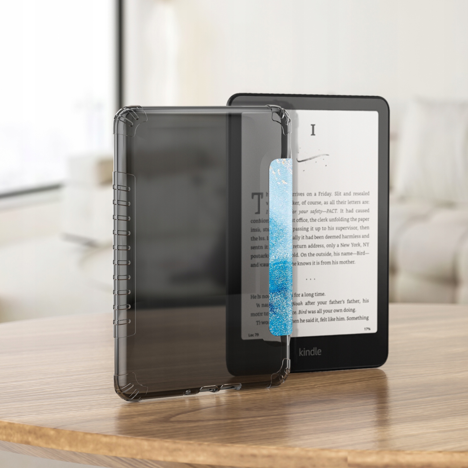 - М’яка, прозора силіконова задня частина – поглинає удари та відображає логотип Kindle
