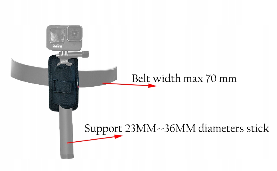 СУМІСНІСТЬ: кобура підходить для палиці діаметром від 23 мм до 36 мм; він сумісний із GoPro 3-Way 2.0, палицею для селфі Insta360 bullet time та іншими палицями; затискач для кобури підходить для пояса шириною 70 см