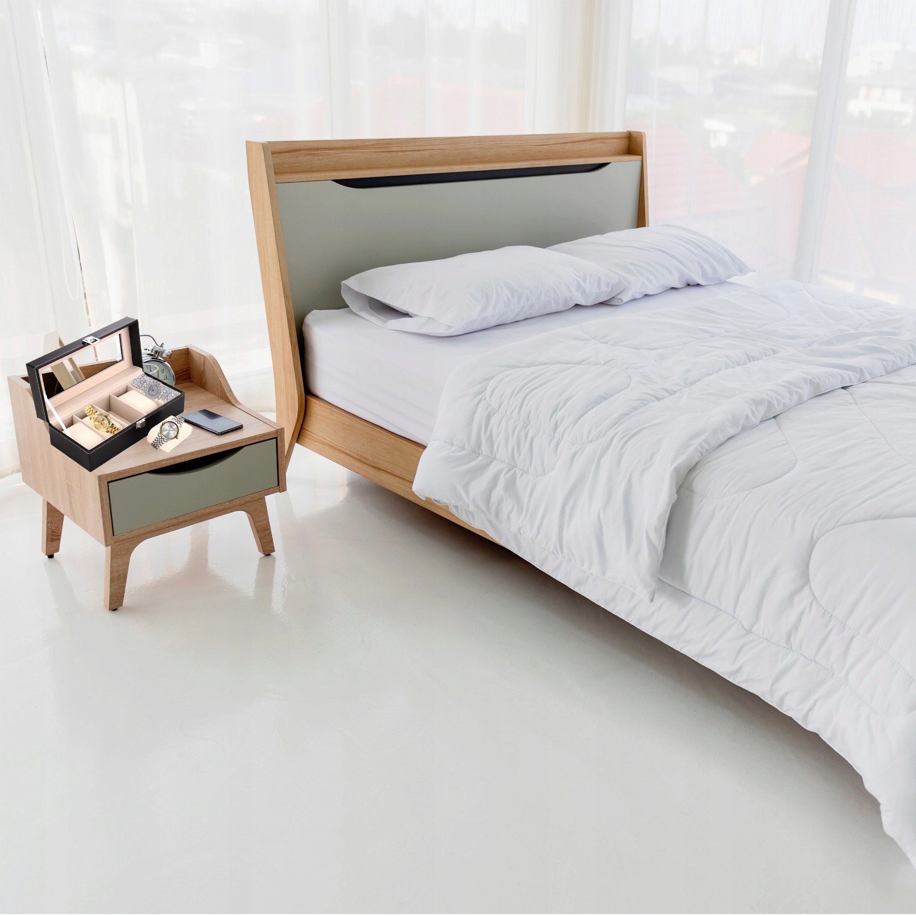 Органайзер для годинника має внутрішню частину, обшиту спеціальним надзвичайно м’яким матеріалом. Матеріал захищає вміст чохла від подряпин. Відсіки розділені більш високими стінками, що захищає аксесуари, що зберігаються, від небажаного контакту, який може призвести до знищення.
