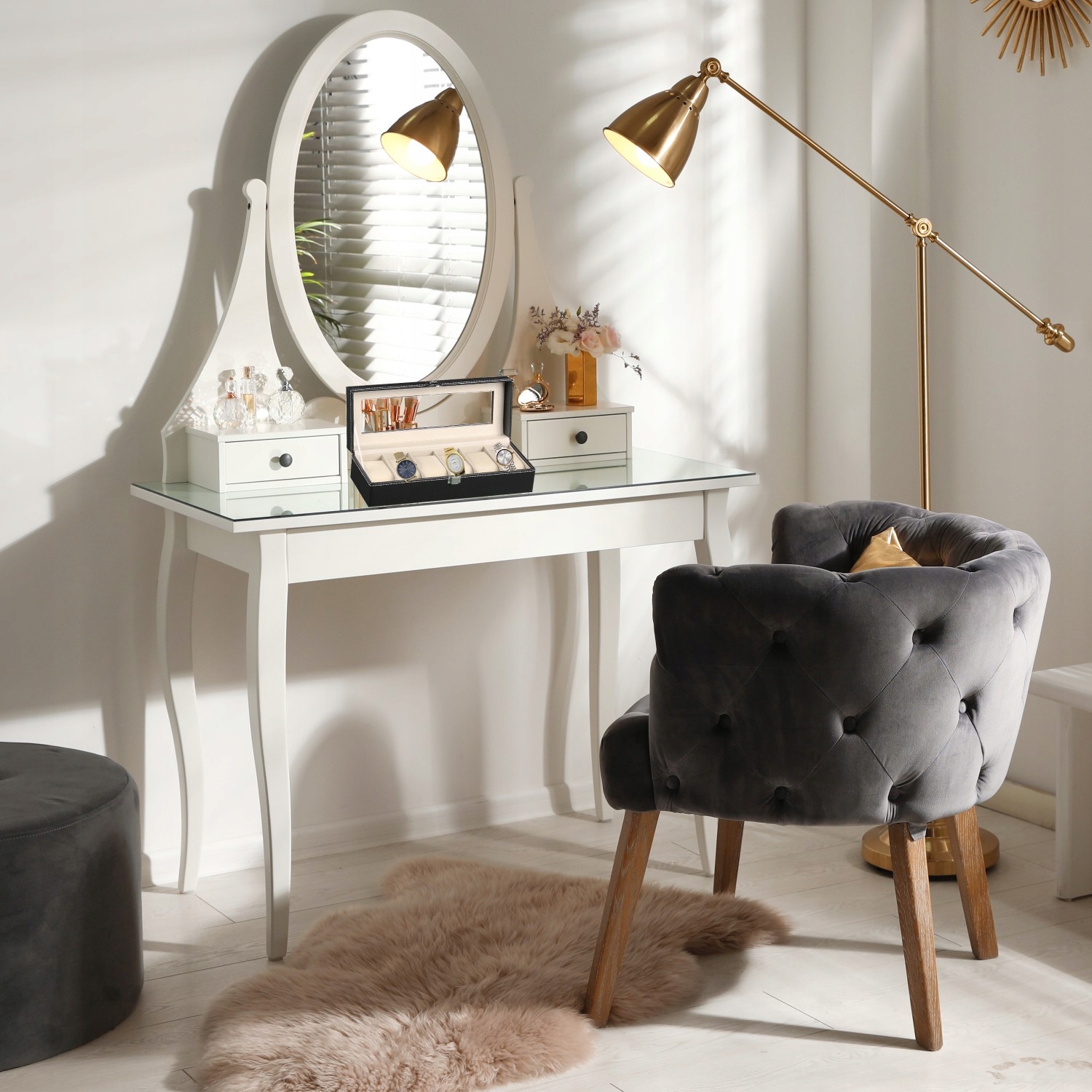 ✔️туалетний столик має відкидну прозору кришку з органайзером під нею.