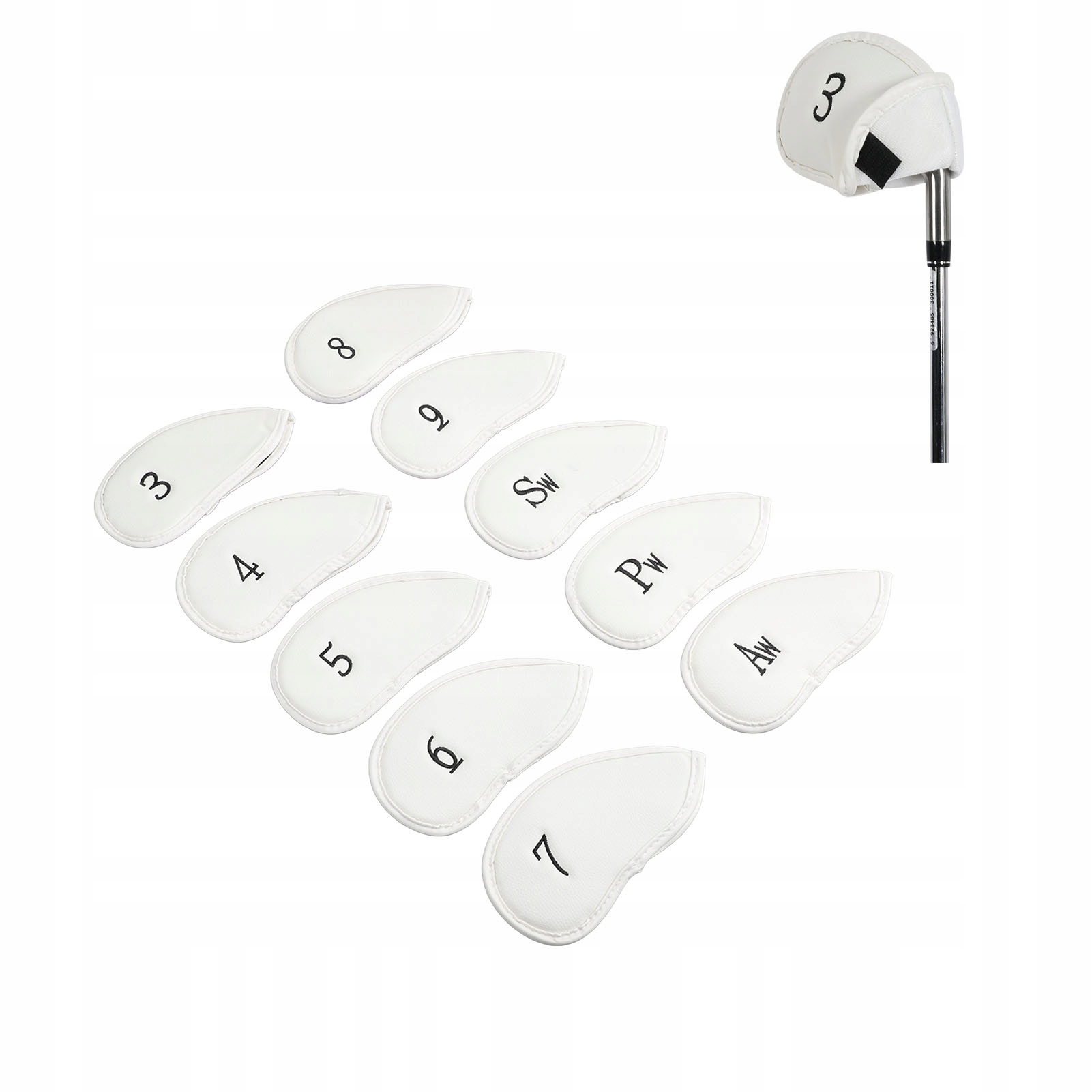 1. 10 шт. Головний убір: набір чохлів для ключок для гольфу включає 10 чохлів для гольф-айронів, 3, 4, 5, 6, 7, 8, 9, aw, PW і SW. Ви можете поширювати їх відповідно до своїх уподобань.